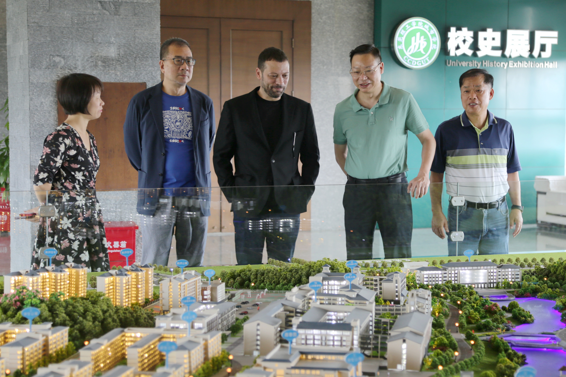随后,来访嘉宾在黄兢等领导的陪同下参观校园,在参观创意设计学院作品展期间,创意设计学院王锦锋院长等为来访嘉宾详细介绍了优秀设计作品。圣若瑟大学代表一行对beat365优美的环境和极具特色的教学设施表示赞赏,称赞beat365学生的设计作品富有创造力,令人印象深刻。现场氛围十分愉悦。