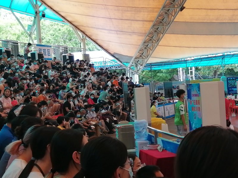 到达体育馆后,同学们顺利地进行了体温测试、身份信息登记、疫苗接种和30分钟的留观。志愿者们在场馆协助秩序维持,留心留观区同学们的情况,随后引导同学们有序乘车返回。