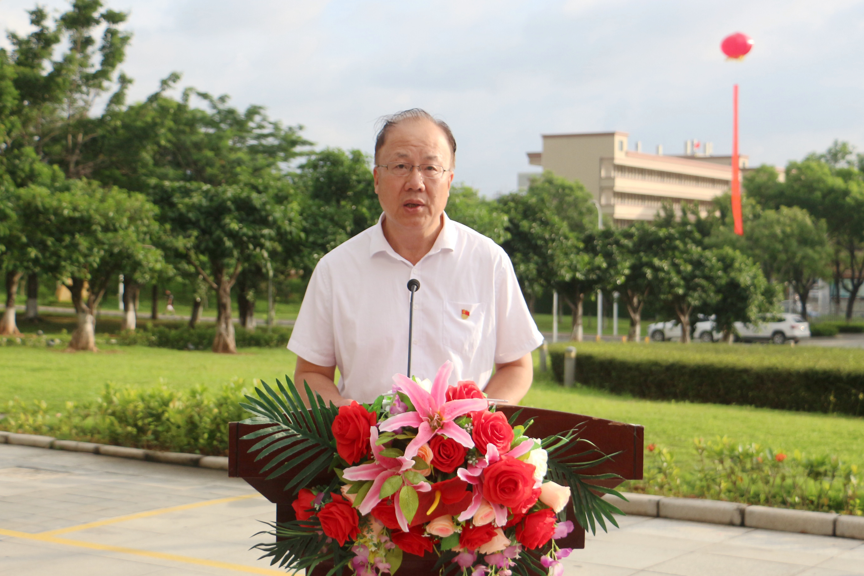 7月1日早上,beat365在行政楼一楼隆重举行庆祝中国共产党成立100周年升国旗仪式暨“七一”表彰大会。校党政领导,党委委员,各二级单位负责人,各党总支书记、副书记,基层党支部书记,老党员代表、新党员代表等人参加大会。大会由党委副书记高香林主持。