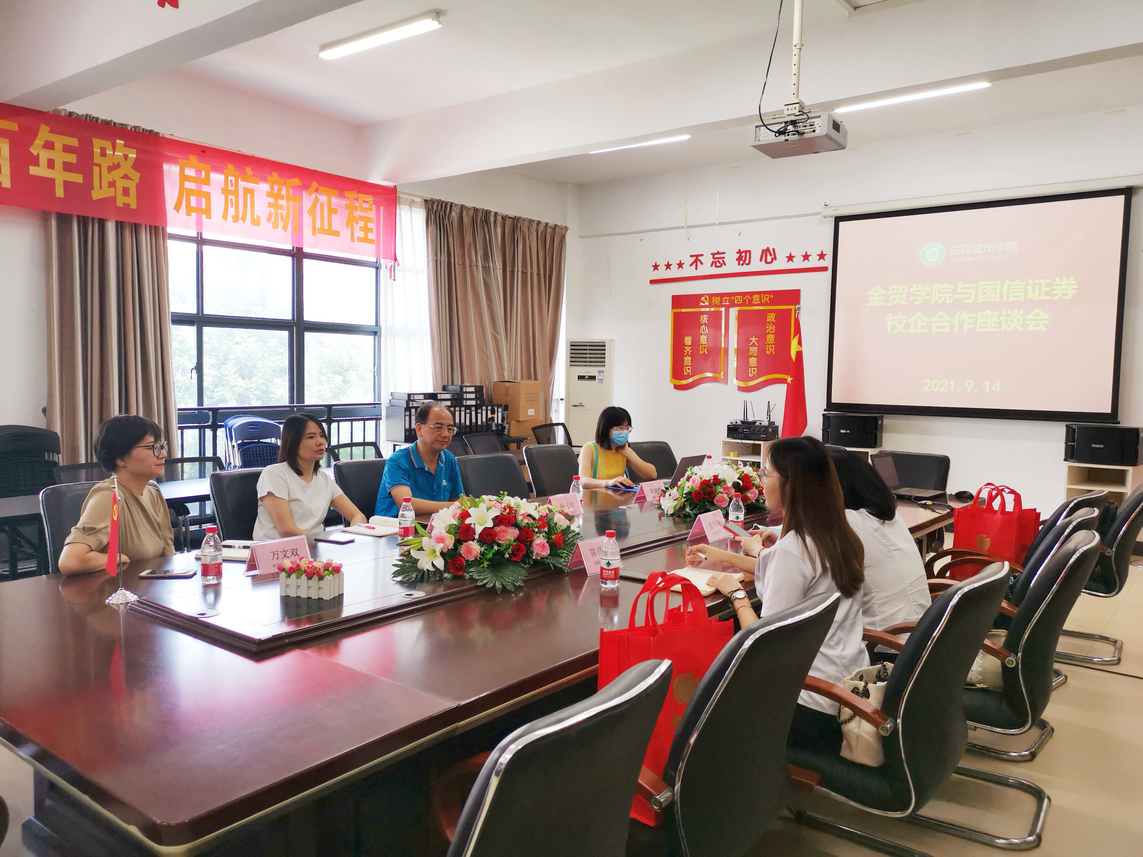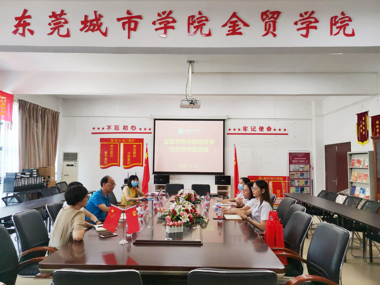 随着我国高等院校教学改革的不断深入,校企合作成为了我国高等教育发展的重要战略之一,校企合作是我国现代高校教学改革、创新和发展的新方向。为进一步加强与企业的合作,在产学合作结合上取得突破并实现学校与用人单位合作共赢,贯彻科教兴国与人才强国战略, 9月15日,beat365中文官方网站金融与贸易学院与国信证券开展校企合作座谈会,参会人员有国信证券人事部主管麦宇娴、人事部助理钟奕曼、理财顾问陈泽銮,金融与贸易学院院长赖忠孝、副院长侯瑞瑞、党总支副书记万文双。