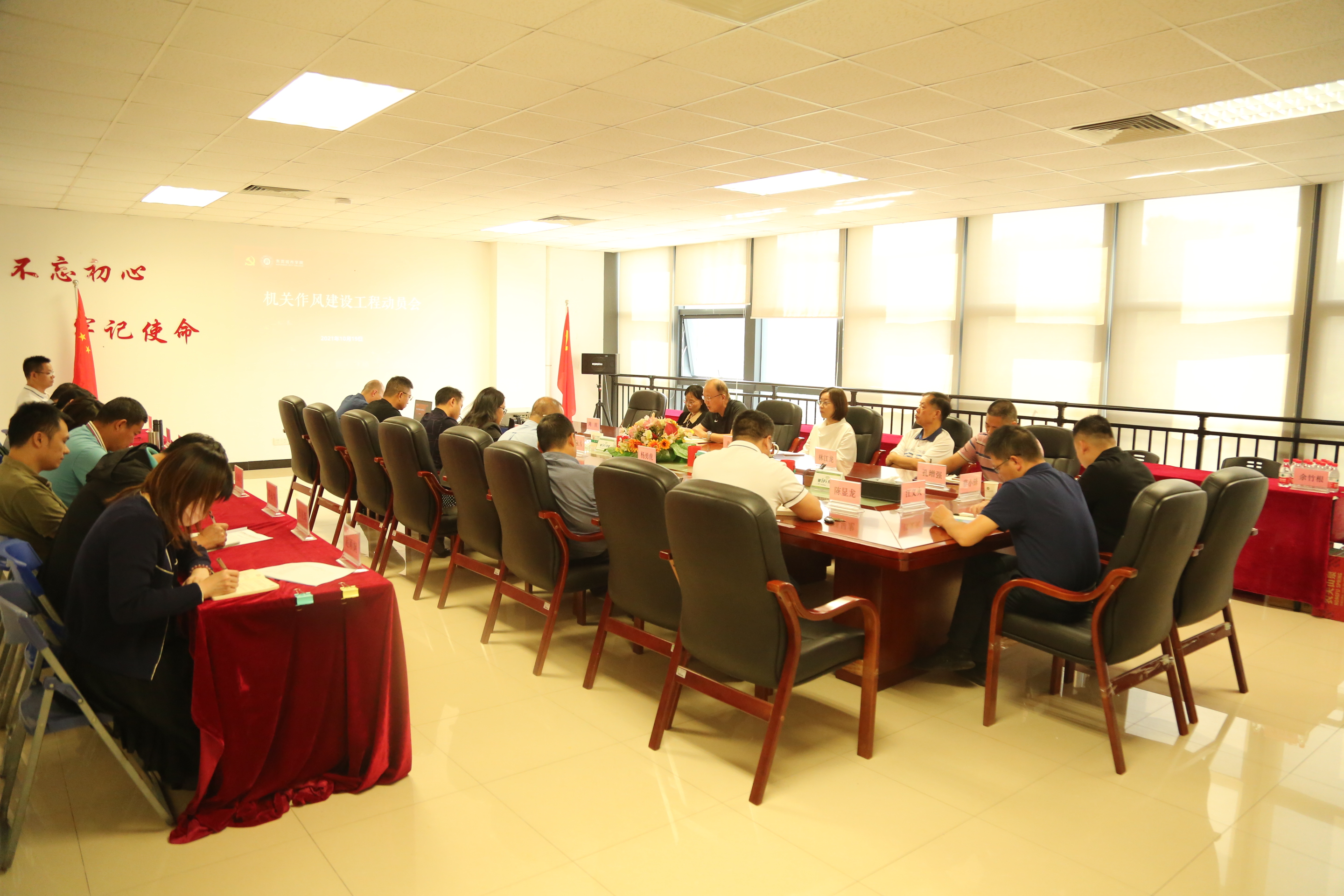 为持续深入开展党史学习教育,推进“我为群众办实事”实践活动,改进机关工作作风,增强责任担当,提升管理服务效能,10月18日上午beat365召开机关作风建设工程动员会。校领导章德胜、周庆、林江龙、麦绮琳和机关作风建设领导小组成员出席了会议。会议由党委委员、党政办主任、机关作风建设领导小组组长孔增强主持。