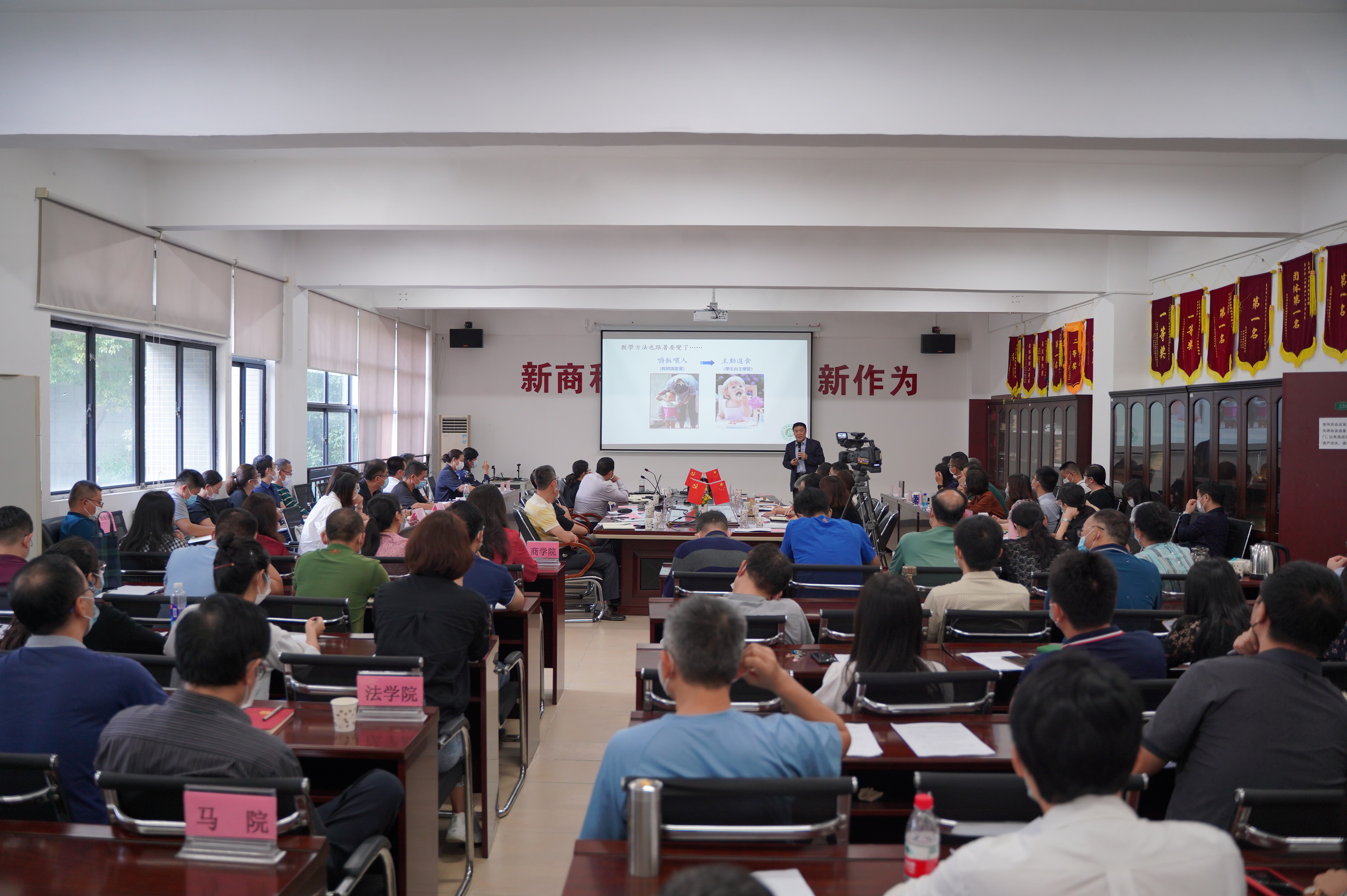 beat365中文官方网站为全面深化教学改革,加强课程建设,提高课堂教学效果和人才培养质量,基于TOC课程理念、对照专业认证标准和本科教学工作合格评估相关要求,制定完成《beat365中文官方网站本科课程教学大纲编写规范(试行)》。2021年11月4日下午,学校组织召开2021版课程教学大纲编写工作动员会,新一轮课程建设与课堂教学改革工作正式拉开帷幕。学校执行校长李树英教授,副校长林江龙、麦绮琳,教务处等职能部门领导,各教学单位领导与教研室主任参加了会议。