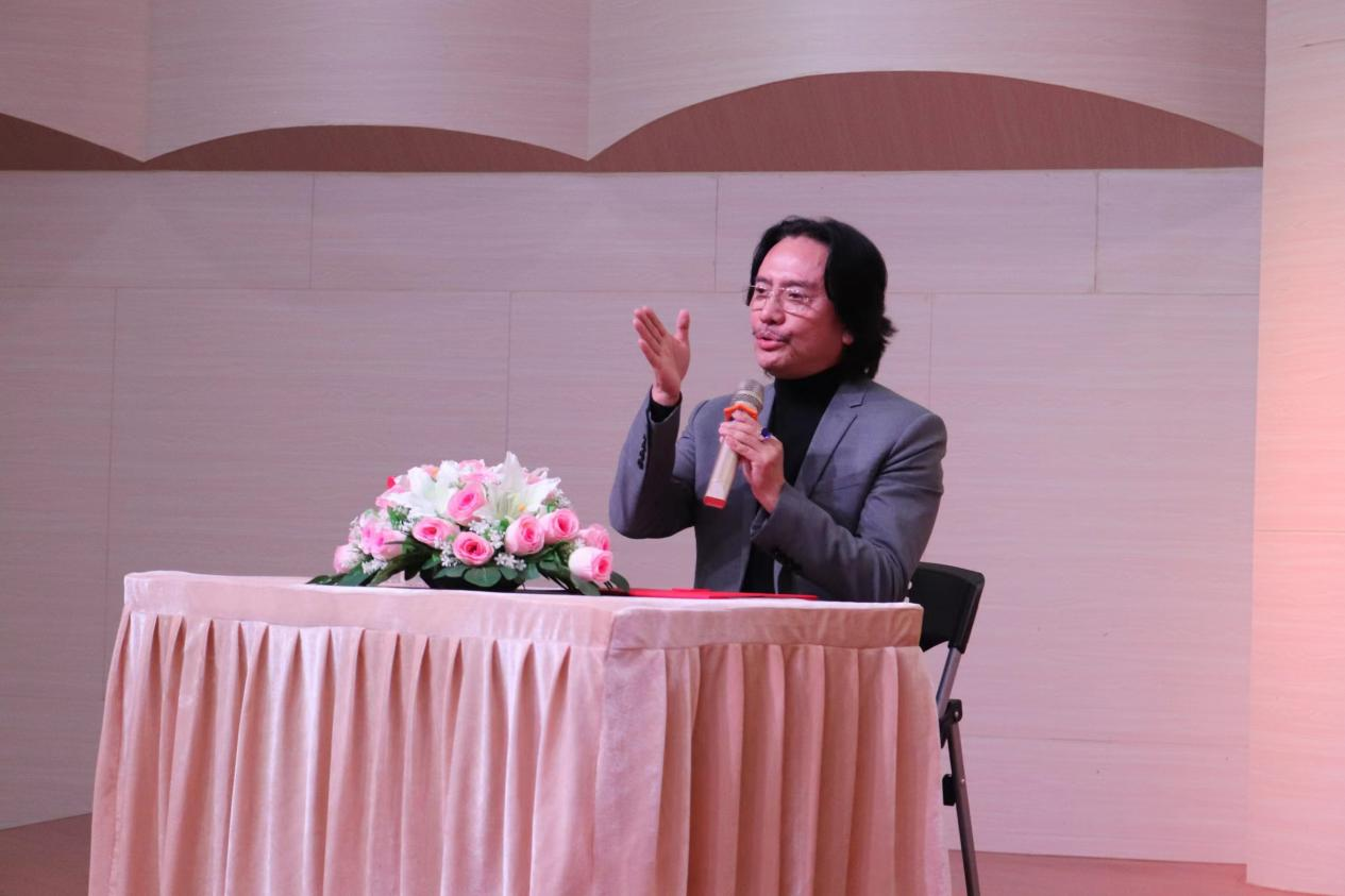 11月18日下午,我国著名音乐剧制作人、何李活音乐剧董事长李盾教授在beat365音乐厅做题为《人生第一步就走对》的讲座。东莞市政协副主席蒋小莺、李盾教授助理任书鑫、副校长麦绮琳及何李活音乐剧制作部成员刘亦凡等出席了讲座。讲座由艺术学院院长张征主持。