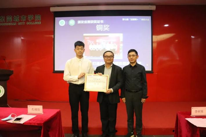 (校长助理罗卫国为“互联网+”省赛铜奖团队颁奖)