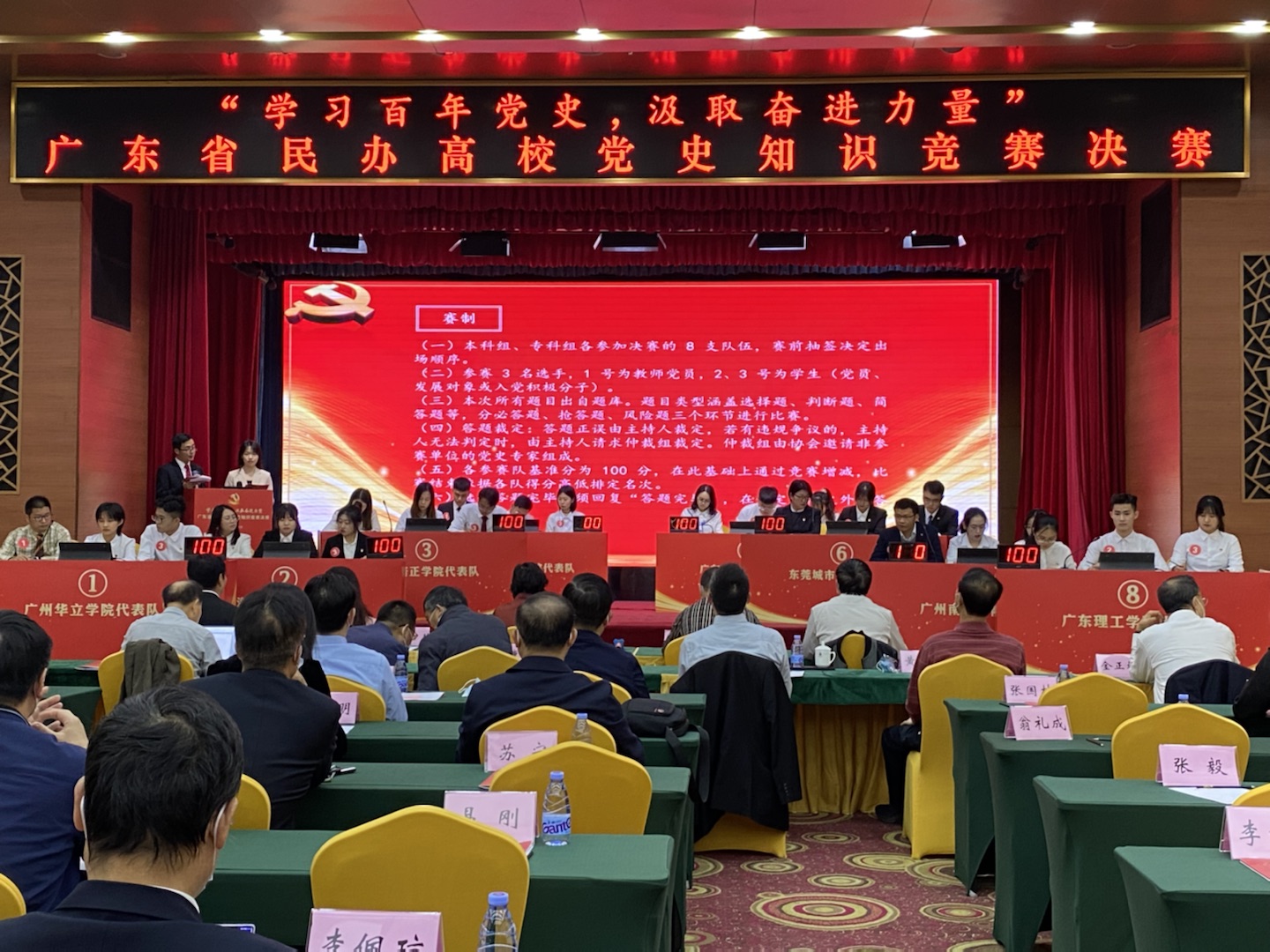 2021年12月12日,广东省民办高校党史知识竞赛决赛在广州市东山宾馆会议中心圆满落幕,beat365金融与贸易学院祁志峰老师、蔡嘉津、谢喆恺两位同学代表学校参赛,并以总积分第二名的好成绩荣获本科组二等奖。beat365荣获优秀组织奖,学校党委书记章德胜出席并代表学校领奖。马克思主义学院院长许修杰、党委宣传部副部长黄璀等一同前往现场观摩比赛,为选手们加油打气。