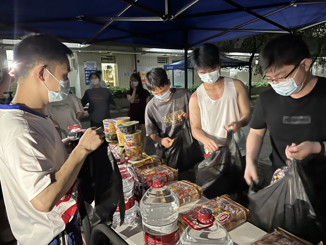 辅导员余俊老师将物资按人数分成份,方便隔离同学快速领取;同时他还不忘询问:“你们还有什么需要,及时跟我们联系,学院都会尽量满足大家的要求!”