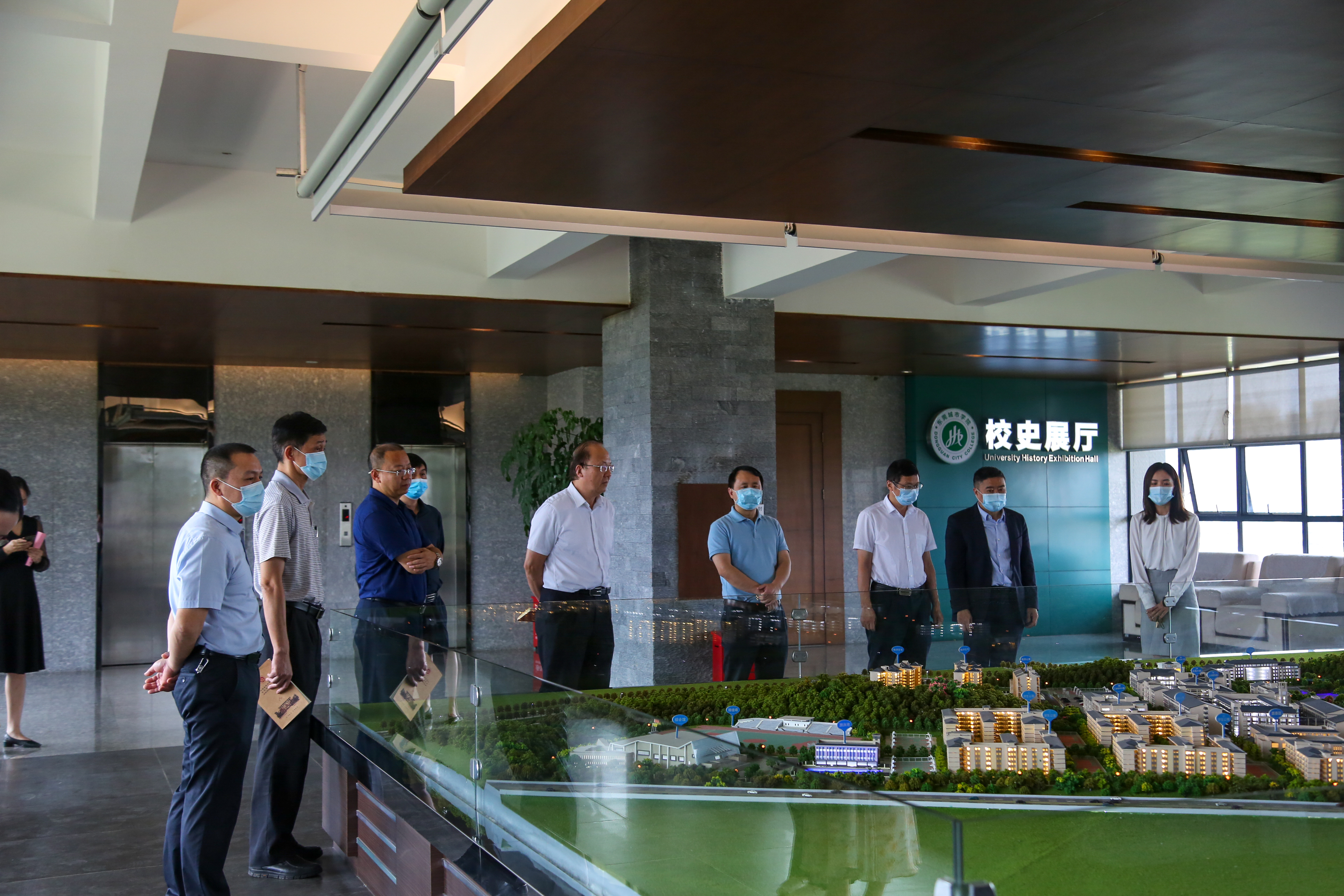 张卫红主席一行在beat365执行校长李树英、党委书记章德胜等校领导的陪同下,俯瞰了校园美景,听取了beat365校园整体布局的沙盘讲解。随后双方在行政楼505会议室召开了调研座谈会,会议由杨勇虎处长主持。