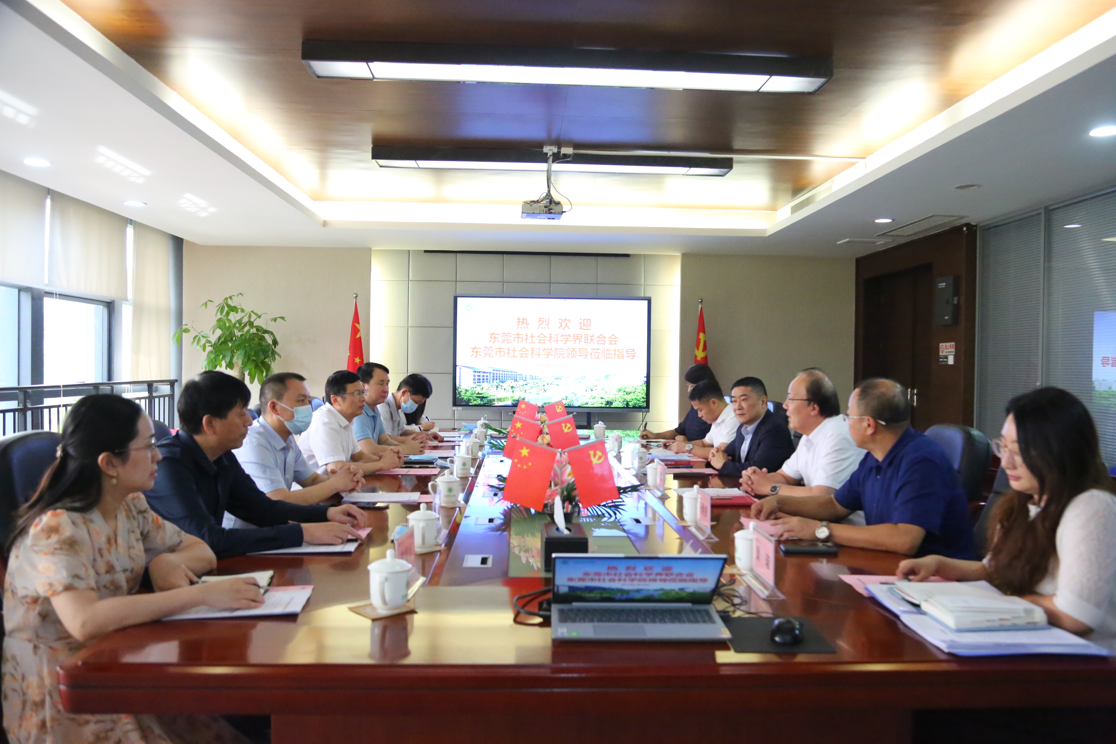 市社科联张卫红主席介绍了市社科联出席嘉宾和此行目的。双方从党的建设、社科平台、社科政策、合作交流等多个方面开展了深入讨论交流。张卫红主席指出市校双方加强交流合作,广泛联系专家学者,积极开展社科宣传普及研究,为东莞在“双万”新起点上加快高质量发展提供智力支持!希望能够早日在beat365建立东莞市社科联分会,加强市校间的联系,提高beat365社科教育工作的水平,为beat365社科工作的开展提供更好的平台与资源。