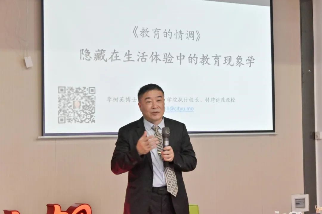 李树英教授首先向大家抛出“隐藏在生活体验中的教育现象学”这一问题,生动讲述了隐藏在教育中的情调。一名教师,可能会有“欢快”,“沉闷”等不同的情调,它们在教学中的效果是截然不同的,一名优秀的老师要始终保持教育的独特性。