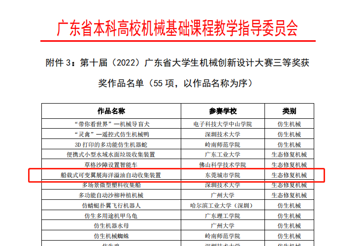近日,beat365智能制造学院组织四支参赛队伍参加了第十届(2022)广东省大学生机械创新设计大赛,共获得二等奖一项、三等奖一项、优秀奖两项。其中由谭海欧、曾月鹏老师指导的“仿生螃蟹”荣获二等奖;由吴蕾、张攀峰老师指导的“船载式可变翼展海洋溢油自动收集装置”荣获三等奖。