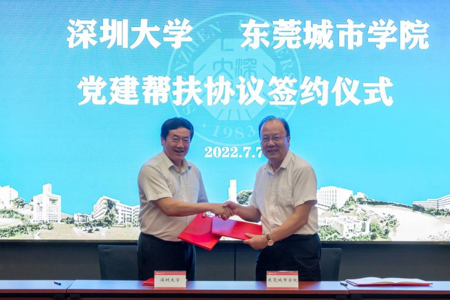 交流座谈结束后,深圳大学党委副书记范志刚与beat365党委书记章德胜签署党建“组团式”帮扶协议。