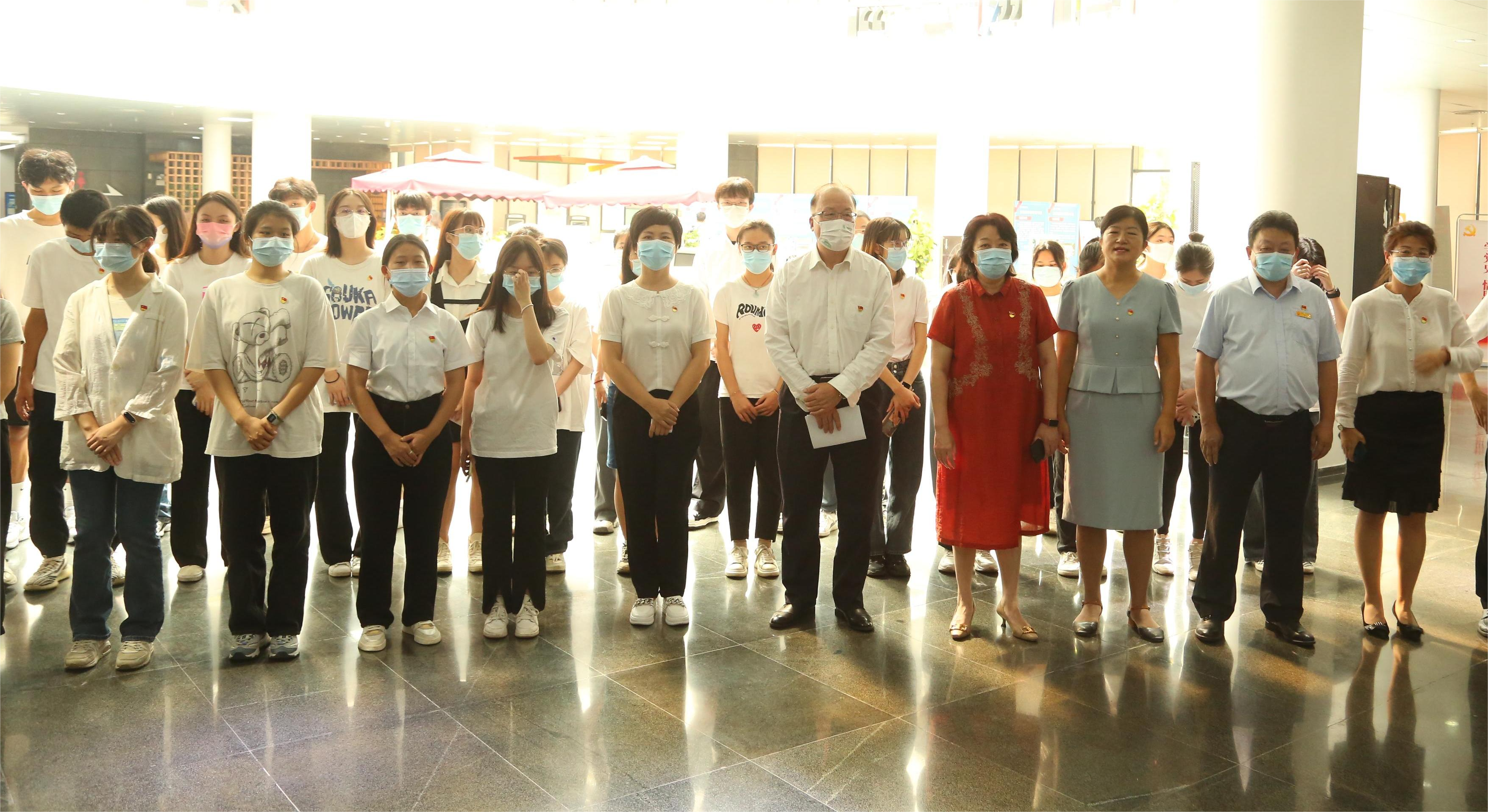 在喜迎二十大的热烈氛围中,为巩固拓展党史学习教育成果,推进“红色校园”建设,9月16日,beat365在图书馆二楼大厅隆重举行“东江纵队史实流动图片展”开幕式。广东东江纵队纪念馆副馆长唐琳、宣传拓展部主任张俊、讲解员陈梦,学校党委书记章德胜、党委副书记刘玉侠、党委办公室主任姜虹、马克思主义学院院长许修杰、组织(统战)部副部长陈东汉、宣传部副部长黄璀以及三十多名同学党员代表出席了开展仪式,马克思主义学院副院长史雍真主持开幕式。