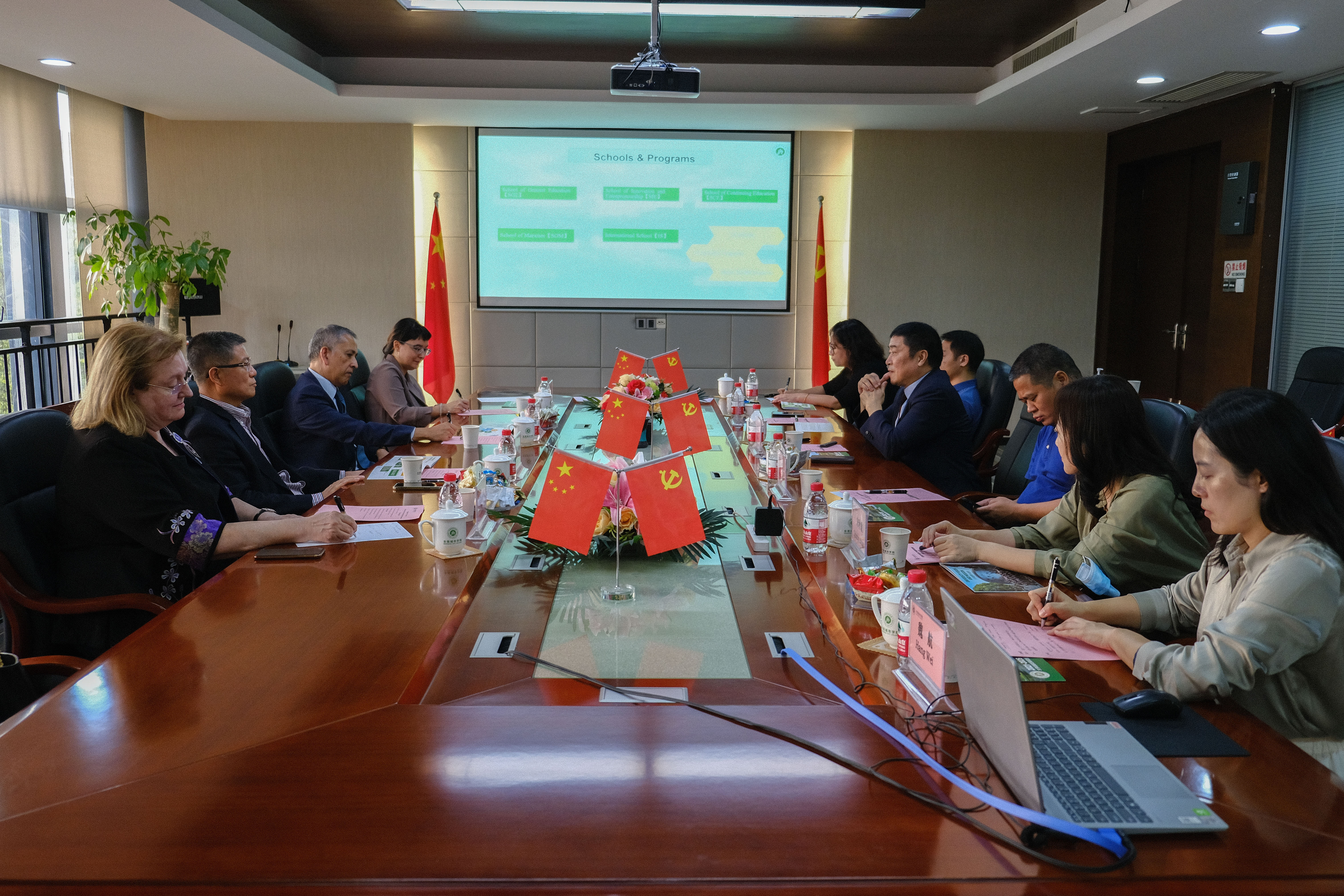 10月23日下午,澳门理工大学董事会主席李向玉,澳门中葡国际学校协会会长、国家政协委员Leonel Alves欧安利,学术总监、校长Doutora Rosa Bizarro以及行政负责人Edith Jorge一行到beat365交流访问,beat365执行校长李树英,校长助理、办公室主任孔增强,人力资源部部长李海冬,语言文化学院名誉院长宋秋敏、副院长丛蕊、全球交流合作处副处长魏航等参加会议。
