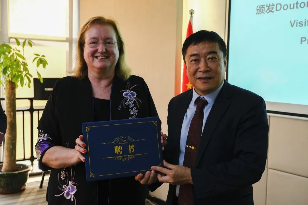 李树英教授和Leonel Alves 欧安利会长共同签署校际合作备忘录。执行校长李树英教授为Doutora Rosa Bizarro颁发客座教授聘书。