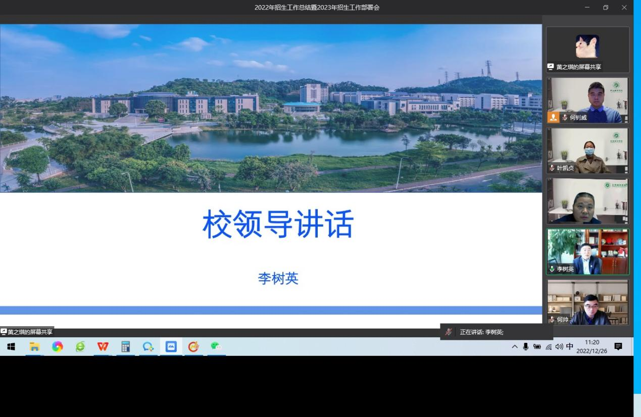 为继续做好2023年招生工作。李树英提出,我们要不断适应新形势,不断调整招生工作方法。面对大湾区高校的增加,我们面临的挑战也会更大。因此,要不断拓宽招生的对象,做好国际化招生。在专业设置上要提前适应大湾区经济发展,在招生宣传上要凸显beat365办学特色、学科优势和改革成果。