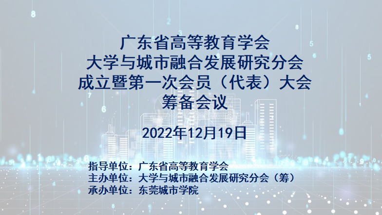 12月19日晚,广东省高等教育学会大学与城市融合发展研究分会(以下简称“研究分会”)成立暨第一次会员代表大会筹备会议,以线上线下相结合的方式召开。