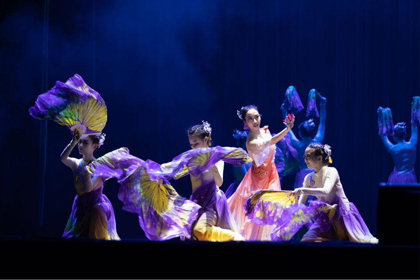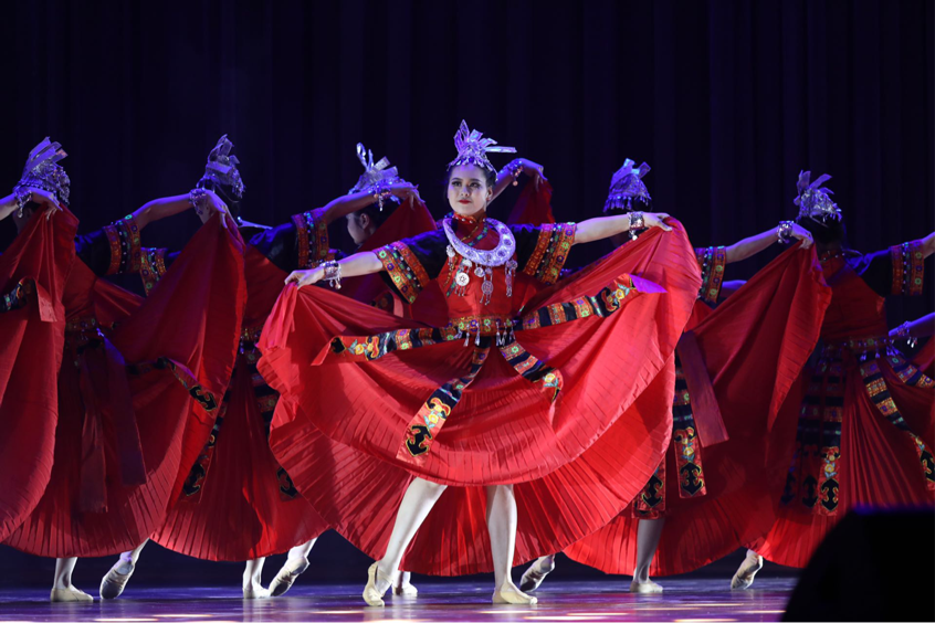 晚会由《缘起》拉开了序幕,掀起全场一片高潮。独舞片段中展示《寒依疏影》将梅花以少女的形象展现在观众眼前,独自凌寒绽放,孤芳自赏,到春回大地,默默隐退;《永远的纳格拉》是一个维吾尔族小伙拍打着纳格拉鼓,表达出对丰收的喜悦,对民族这片土地永远的热爱。舞者们用《一抹红》即将出嫁的苗族新娘怀揣着羞涩、幸福的心情在脸上抹上了一道红妆,对未来美好生活的祈福。敦煌古典舞《迦陵频伽》“山川岩谷中,迦陵频伽声”,集鸟、人、神三种性质于一体,见其形闻其声,内心柔软,顿生敬意,是对世间真善美的守护 与礼赞。民间舞《傣源》傣乡雨林,姑娘入水,慢卷遮掩胴体的衣裙,盘发缠头,打捞青苔的柔柔身影,给沿岸的树木山石留下了许多情意。古典舞《十八焕蝶》翩翩彩蝶如飞翔的花朵,轻盈飞舞,在田野间绘制斑斓的美景。如生命美丽的更替,焕然一新,生生不息。《布衣者》一群善良、朴实的热巴艺人,身穿布衣在生命中传递着信仰和追求,这是对生命轮回的展演,对热巴精神的薪火相传。原创舞剧《棹晫》;《棹》秋是一个多彩的季节,古往今来,人们从不同感受出发,赋予了“秋”字的不同的内涵。我们将秋比做船桨,既是彼此的支撑,又是自我 的中心,看似一个个独立的个体在寻找各自前进的方向,但又有序 的交织成一个整体的图像;《晫》热浪滚滚的夏季,充斥着溪流声,蝉鸣声,玩闹声,盆中清澈的水映照着我们充满期待的脸庞。夏日的夜晚,蚊子的嗡嗡声让我们焦 躁不安。黑夜中闪烁的萤火虫是来自夏夜的,合着蝉鸣,安抚着我们躁热的心绪,高悬的月带领着我们进入来自夏夜独有的梦中;最后晚会在歌曲《美丽中国》的曲调中缓缓落下帷幕。