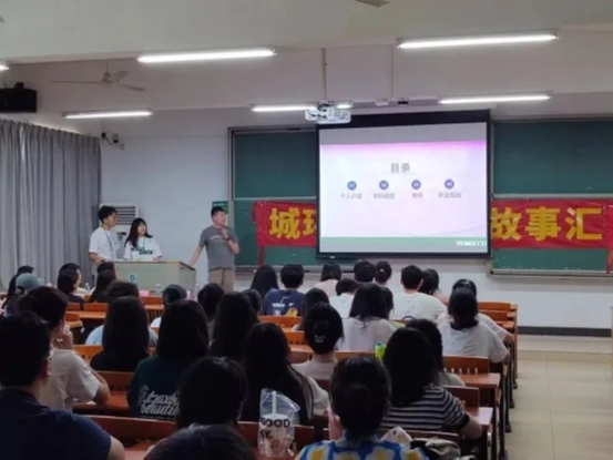 活动中期,由梁逸扬等三位学长依次上台进行学习与工作交流分享。他们分别从大学生活到工作履历纵向剖析了大学生的生涯规划,横向对其获得的成就进行展示与深刻解读,借此呼吁同学们要明确未来努力方向,并为之付出实际行动。此外,学长们强调要善于利用现有资源去努力提高自己的能力,改进自己的不足之处,并且要学好专业知识,以便未来工作中能够站上更高的平台展示自己。