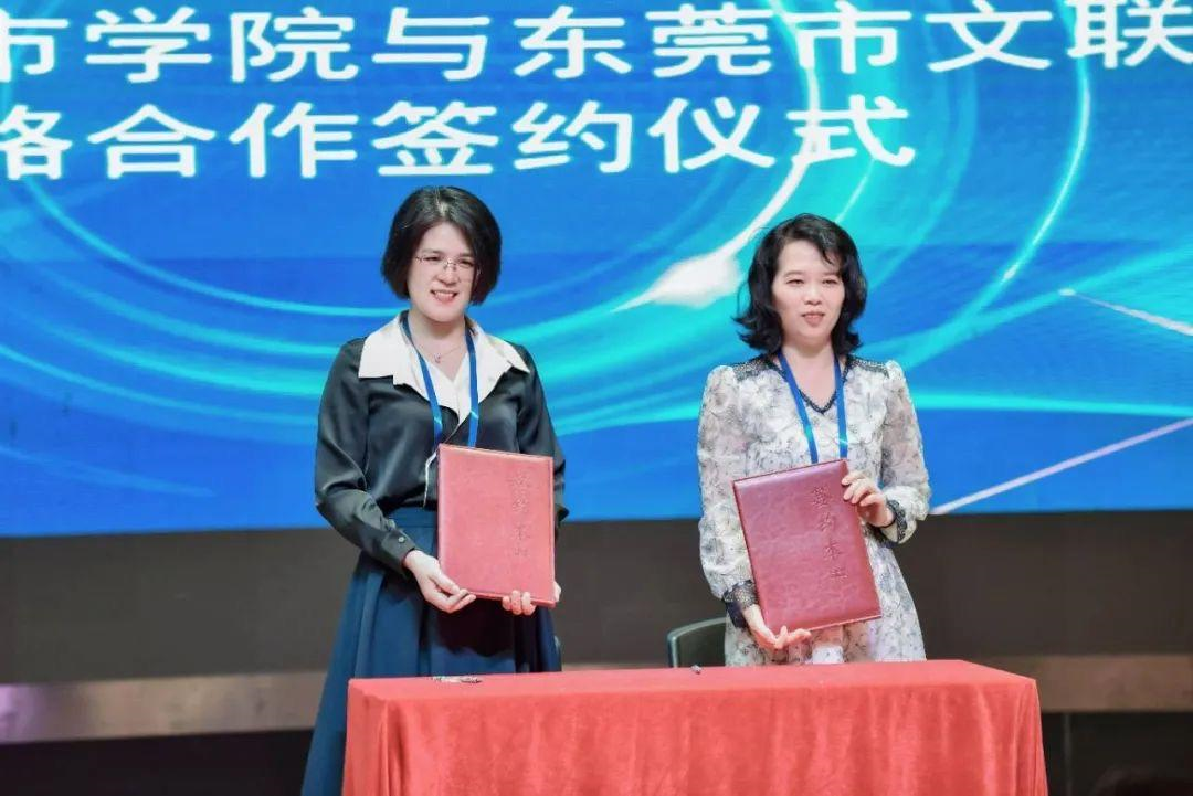 在此次研讨会上,双方签署战略合作协议。东莞市文联向beat365中文官方网站授予“艺术人才培养基地”牌匾。