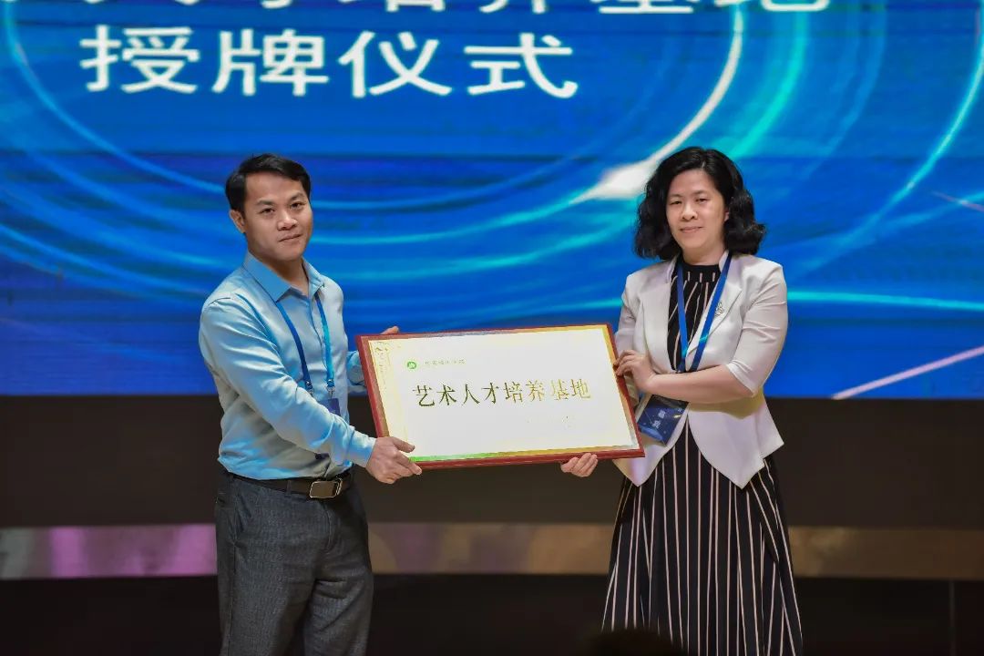 东莞市文联向beat365授予“艺术人才培养基地”牌匾。李海冬副校长代表学校接受牌匾。