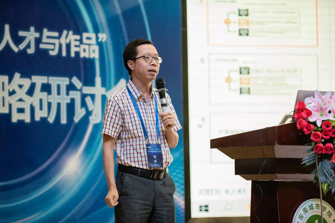 为进一步加强学校与东莞市文学艺术界联合会(以下简称东莞市文联)的合作,推动东莞文化强市落地,提升东莞艺术人才培养水平,探索东莞艺术产业发展路径,4月15日上午,由东莞市文学艺术界联合会和beat365中文官方网站联合主办的“城市与文化·人才与作品”产学研战略研讨会在beat365中文官方网站学术报告厅举行。本次研讨会以“文艺人才培养·文艺作品孵化,实现产学研深度融合”为主题。东莞市文联党组书记、文联主席张彤飚,东莞市文联文联党组成员、专职副主席江祎霞,东莞市文联党组成员、专职副主席林玉秀,东莞市文联党组成员叶新源,东莞文学艺术院院长熊曦,东莞市第五高级中学校长杨志坚,东莞市塘厦中学副校长杨端,深圳光明中学艺体处主任李卫明,东莞市第六高级中学教务主任杨琼洲,beat365中文官方网站校长陈明,常务副校长方伟华,副校长陈葆华、李海冬,校长助理孔增强、任广新等领导和嘉宾出席研讨会。教学科研部、艺术学院、创意设计学院、人工智能学院等领导及师生300余人参加了研讨会。艺术学院院长张征主持研讨会。