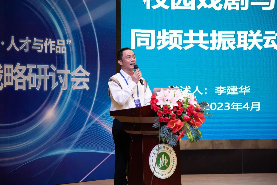 东莞市戏剧家协会副主席李建华教授以“校园戏剧与社会同频共振联动发展”为题进行分享。他回顾了近几年来,东莞戏剧家协会与beat365艺术学院的合作中,beat365学生参与到东莞市相关作品中演绎演出的情况。他谈到校园戏剧是在校园或者表现校园的一种戏剧内容。校园戏剧具有贴近生活,找准定位,以学定教,可塑性强、耗资少等优势,并提出校园戏剧要引领思想,提升品格,走出校园,实战训练,打破围墙,资源共享等途径促进社会融合发展。