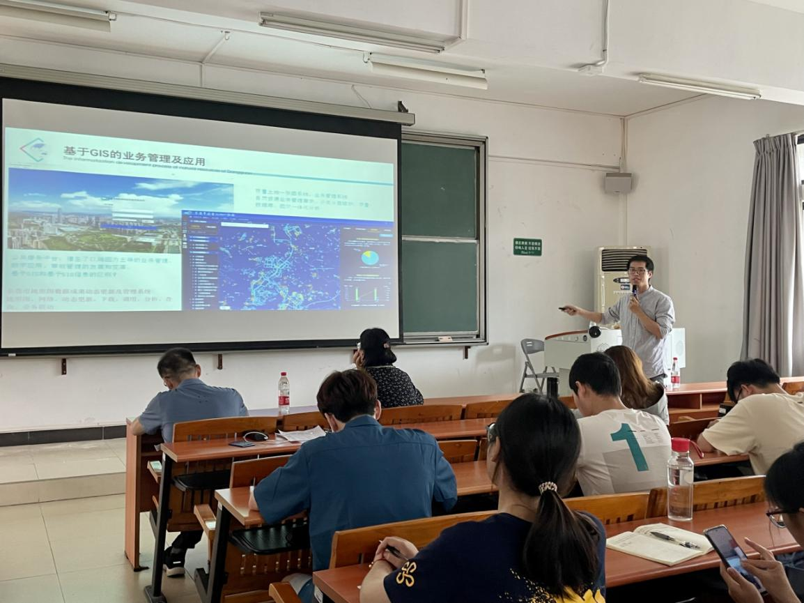徐启恒教授以GIS的发展历史为切入点,概括介绍了从20世纪90年代以来GIS信息化和自然资源信息化建设发展的各个阶段及其特点,分别从自然资源信息化发展、GIS公共服务平台建设、三维自然资源及应用等专题展开讲解,并结合水乡功能区自然资源信息化建设应用实践进行了详细介绍。在徐教授的讲解下,同学们了解了GIS及其信息化的发展、自然资源信息化的发展历程,从人工手绘地图到计算机数字化测图的发展,从公共服务平台到自然资源信息化平台的建设,再到三维自然资源建设以及智慧自然资源建设各个阶段的发展模式和主要成果;同时也认识到自然资源数据和系统是相辅相成的,也了解了自然资源信息化建设的发展模式和发展进程。