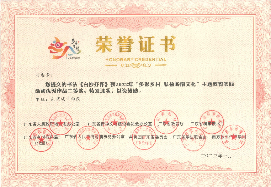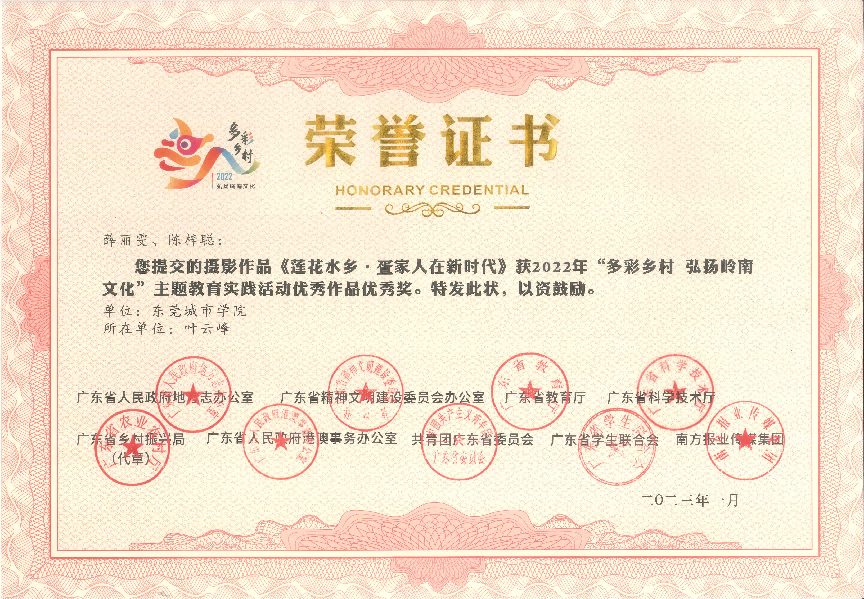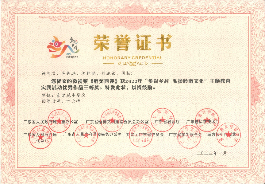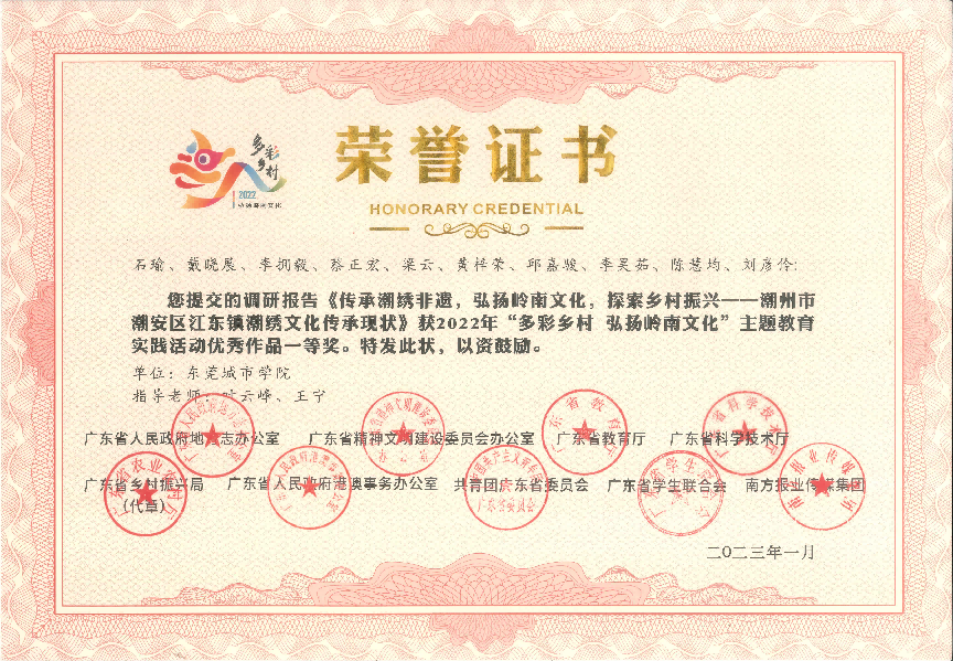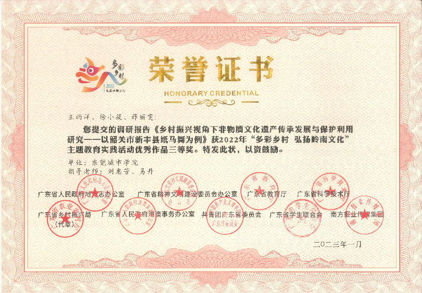 近日传来喜讯!在2022年,由广东省人民政府地方志办公室、广东省精神文明建设委员会办公室、广东省教育厅、广东省科学技术厅、广东省乡村振兴局、广东省人民政府港澳事务办公室、共青团广东省委员会广东省学生联合会、南方报业传媒集团联合组织开展的 2022年“多彩乡村 弘扬岭南文化”主题教育实践活动中,beat365获得一等奖1项,二等奖1项,三等奖2项,优秀奖1项,并获优秀组织单位。