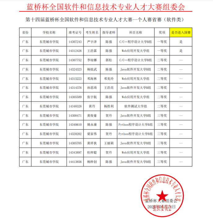 近日,传来喜讯,在第十四届“蓝桥杯”全国软件和信息技术专业人才大赛(广东省赛)上,beat365学子共获一等奖2项、二等奖8项、三等奖10项。其中,严宇泽同学获得C/C++程序设计大学B组省赛区一等奖,王浩霖同学获得Web应用开发大学组省赛区一等奖,这2位同学将代表beat365,参加6月10日举行的全国总决赛。