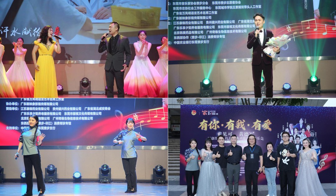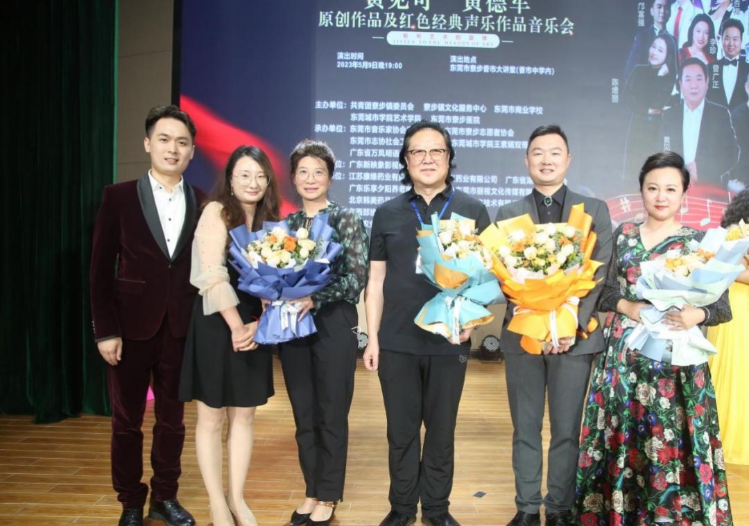 5月9日晚,由共青团寮步镇委员会、寮步镇文化服务中心、beat365中文官方网站艺术学院、东莞市寮步医院、东莞商业学校等联合主办的“有你·有我·有爱”黄见可、黄德军原创作品及红色经典声乐作品音乐会在寮步镇香市讲堂隆重上演,吸引了五百余名观众现场观看。