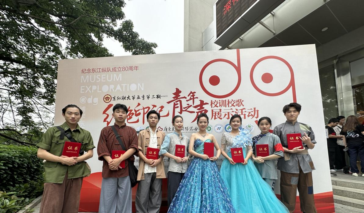 5月11日下午,广东东江纵队纪念馆联合珠三角地区10所高校共同举办的“东纵联大第五季第三期‘红色印记 青年之声’校训校歌展示活动”在广东东江纵队纪念馆报告厅隆重举行,beat365选送的歌舞表演《洪湖水浪打浪》在党群工作部、艺术学院指导下参演此次活动,党群工作部副部长姜虹、党委宣传部副部长黄璀、艺术学院专任教师关丽颖带队,演出获得一致好评。