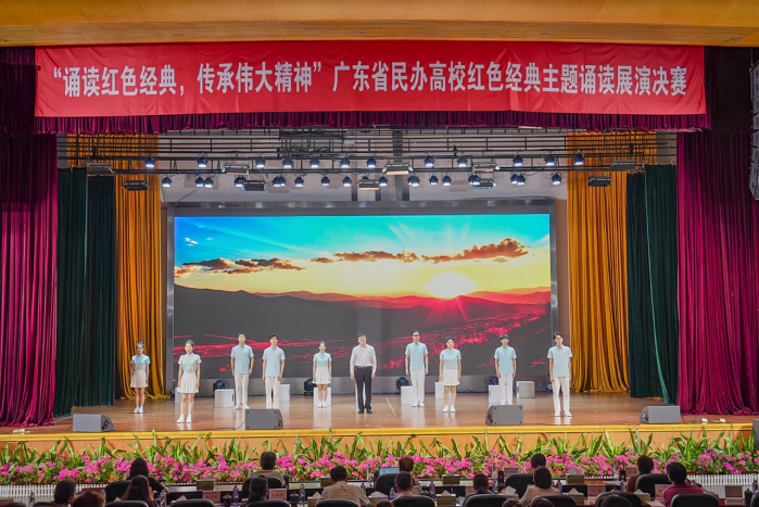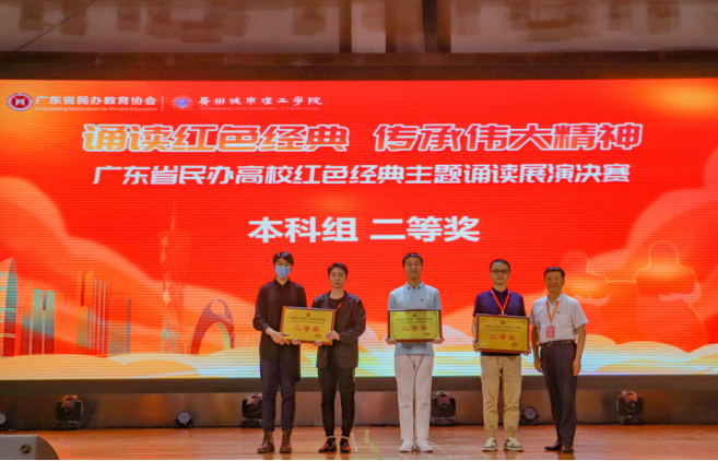 为深入学习贯彻党的二十大精神和习近平总书记关于青年工作的重要论述,组织广大青年学习红色经典、先进典型,弘扬爱国主义精神,增强民族自信心和自豪感,展现青年风采,赓续精神血脉,5月27日,广东省民办教育协会于广州城市理工学院学生活动中心举办“诵读红色经典,传承伟大精神”主题诵读展演决赛活动,beat365选送的参赛作品《诗颂百年风华》在党群工作部、马克思主义学院、艺术学院指导下参加此次展演决赛,由党群工作部副部长姜虹、党委宣传部副部长黄璀带队,获得本科组二等奖。