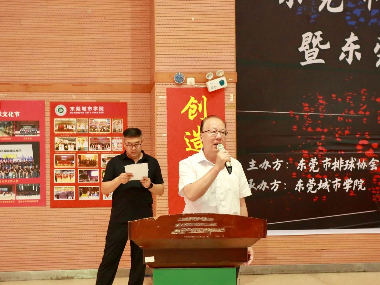 随后我党委书记章德胜宣布第五届排球联赛暨东莞市“排协杯”邀请赛正式开幕。