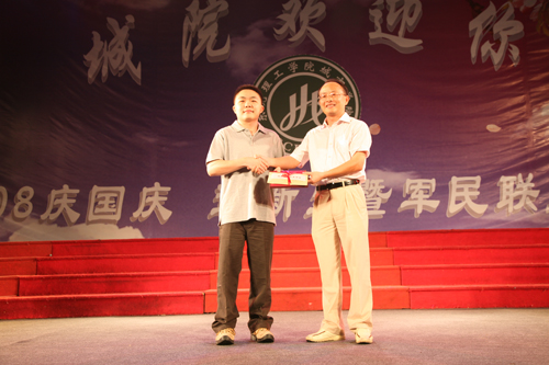 9月25日,东莞理工学院城市学院2008级“庆国庆、迎新生”暨军民联欢晚会在田径场隆重举行。