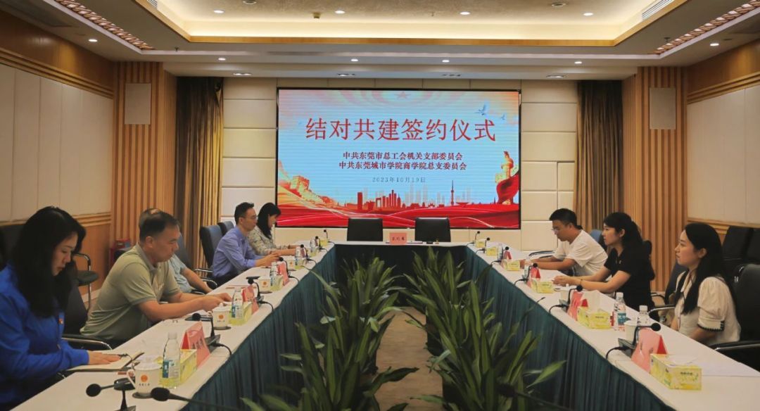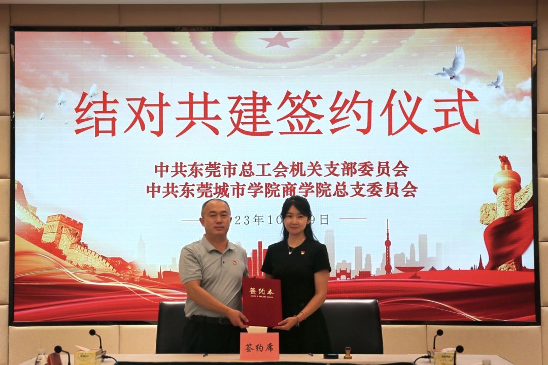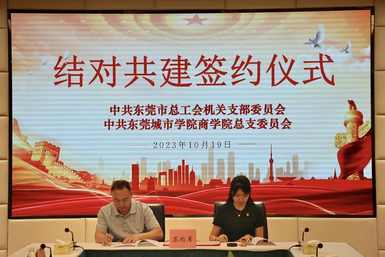 为进一步加强新形势下基层党组织建设,强化党组织之间交流合作,促进资源共享、优势互补,助推发展共赢,2023年10月19日下午,中共东莞市总工会机关支部委员会和中共beat365中文官方网站商学院总支委员会结对共建签约仪式顺利举行。