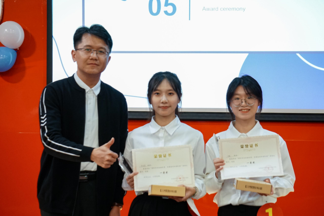 在郭戈老师讲话结束后,主持人宣读比赛结果,获得特等奖是23级会计2班兰玥,获得一等奖有23级汉语言文学8班的李雯,23级商务英语1班卓依雯,获得有二等奖23级网络与新媒体5班卢祺,22级汉语言文学7班黄柳婷,获得三等奖的有23级英语专升本3班龙玉婷,23级法学6班张凡乐,22级视觉传达设计2班王玥涵。分别由语言文化学院名誉院长宋秋敏、党总支书记高政、东莞银行总行合规部高级法律合规师曾丽敏、评委老师有东莞银行总行反洗钱中心主管王栋良、为获奖学生颁奖并与其合影留念。