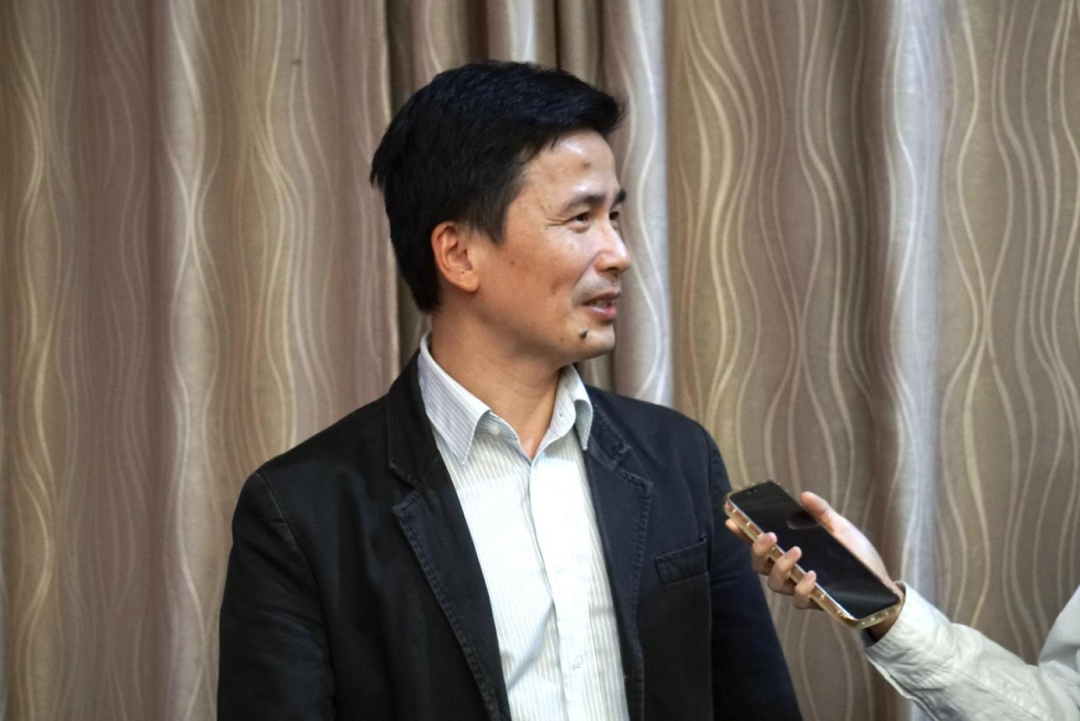 语言文化学院郭戈老师上台为8位选手进行点评讲话。他用专业、幽默的语言对选手的表现进行了客观的评价提出了选手们的不足。同时对于选手在撰写演讲稿时对内容和结构的把握以及演讲的状态调整提出建议。