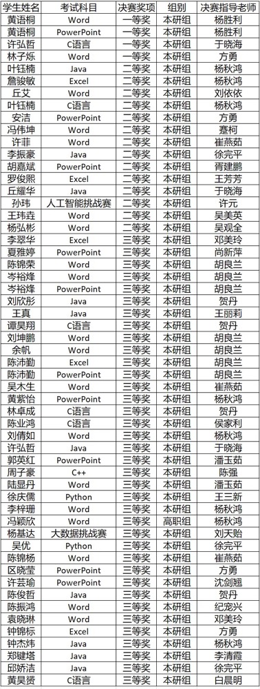 在国赛中,beat365学生再次取得佳绩,4 人获得一等奖,14 人获得二等奖,37 人获得三等奖,累计 55 人次获奖。蹇柯、杨秋鸿、于晓海、杨胜利、方勇、邓美玲、潘玉茹、胡良兰、白晨明等 27 名老师荣获“优秀指导老师”称号,学校荣获“突出贡献奖”。