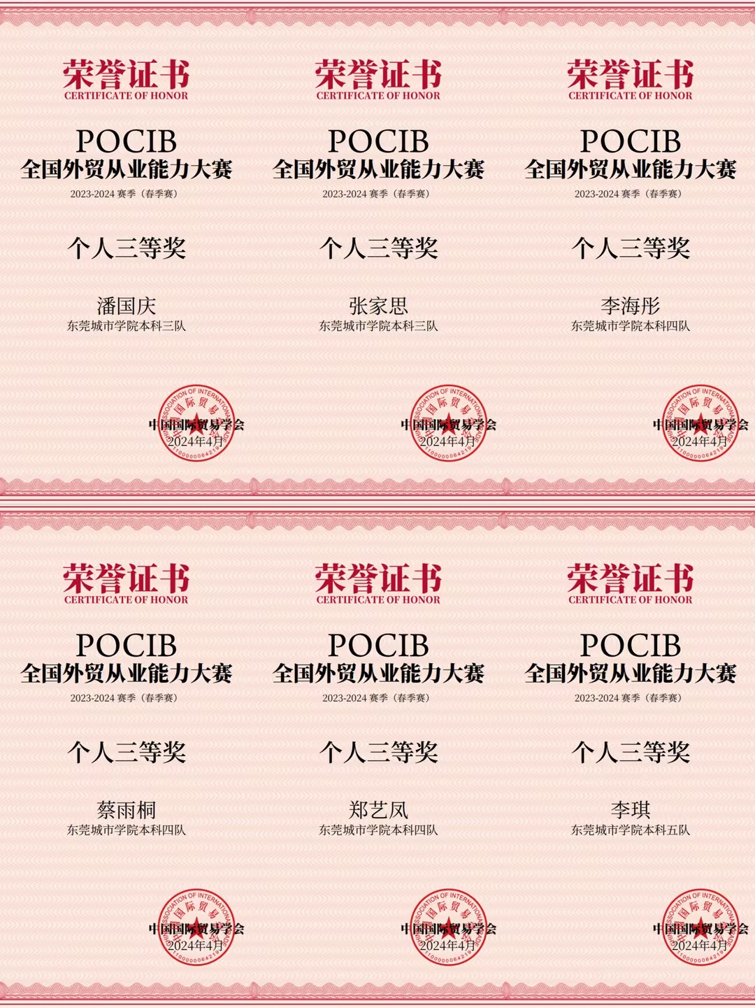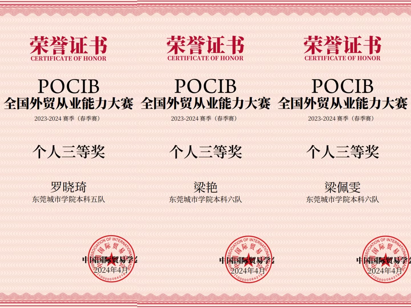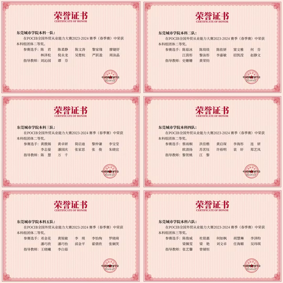 2024年4月29日,第十三届POCIB全国外贸从业能力春季赛圆满结束,beat365会计与金融学院共计六支参赛队伍,取得了团体二等奖5项、三等奖1项、个人三等奖15项的优异成绩,二等奖获奖比率创beat365历年参赛以来新高。