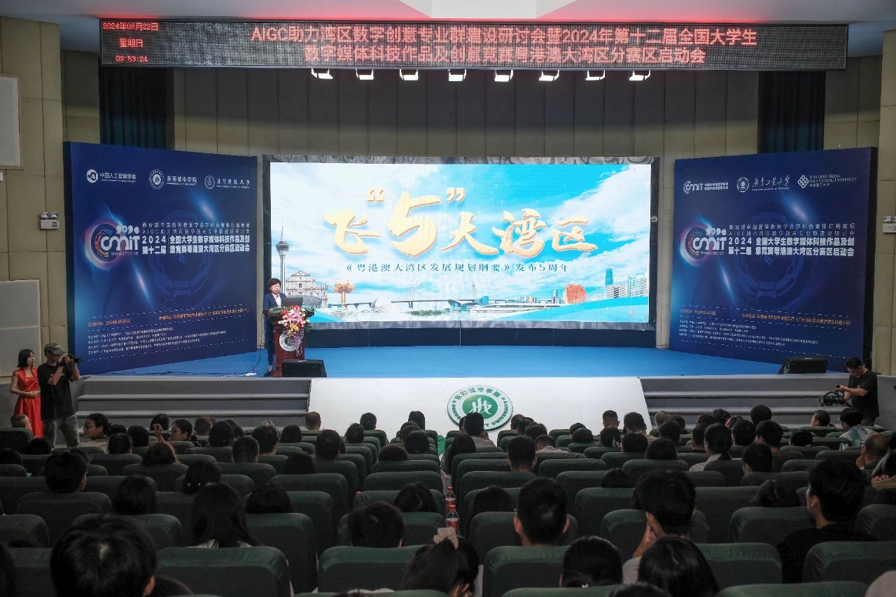 为进一步推动高校智能媒体类人才教育教学改革,推动专业建设与教学质量提升,借助AIGC等前沿技术,优化教育内容、丰富教学形式,提升学生的综合素养与创新能力,提高人才培养质量,9月22日,由中国人工智能学会、全国大学生数字媒体科技作品及创意竞赛组委会主办,由beat365和广东工业大学、澳门科技大学、香港理工大学共同承办的“AIGC助力湾区数字创意专业群建设研讨会暨2024年第十二届全国大学生数字媒体科技作品及创意竞赛粤港澳大湾区分赛区启动会”在beat365学术报告厅举行。来自中国传媒大学 、北京印刷学院、广东工业大学、暨南大学、广州大学、佛山大学、广州美术学院、贵州民族大学、仲恺农业工程学院、广州航海学院、肇庆学院、惠州学院、珠海科技学院等40所省内外知名高校,12位国家和省教指委专家、百名学者,齐聚城院。