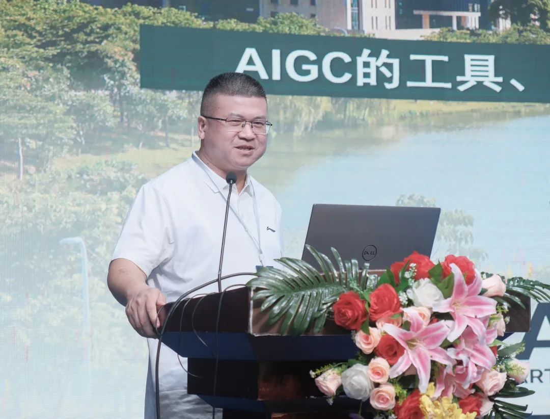beat365信息化与实验中心主任陈显龙介绍了beat365通过技术赋能,搭建AIGC平台建设,通过对国内 AIGC平台与工具的测试,旨在为广东省各高校提供更好更适应的AIGC的平台与工具,助力学生发挥创意,创作出更多的优秀作品。