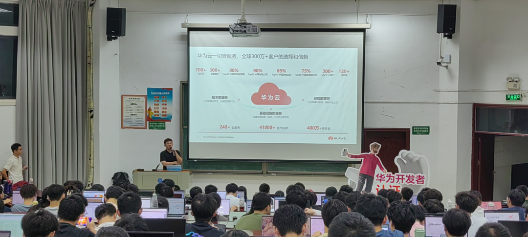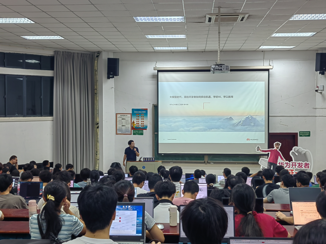 专家还围绕人工智能的发展历程以及入门难点、AI工程师面临的问题和挑战进行了普及,并介绍了昇腾云服务以及算力的优势和分布,针对华为云一站式AI开发管理平台ModelArts和AI Gallery社区的多种功能进行讲解,在AI Gallery上演示了大模型的开发,鼓励同学们抓住时代机遇,学好AI。