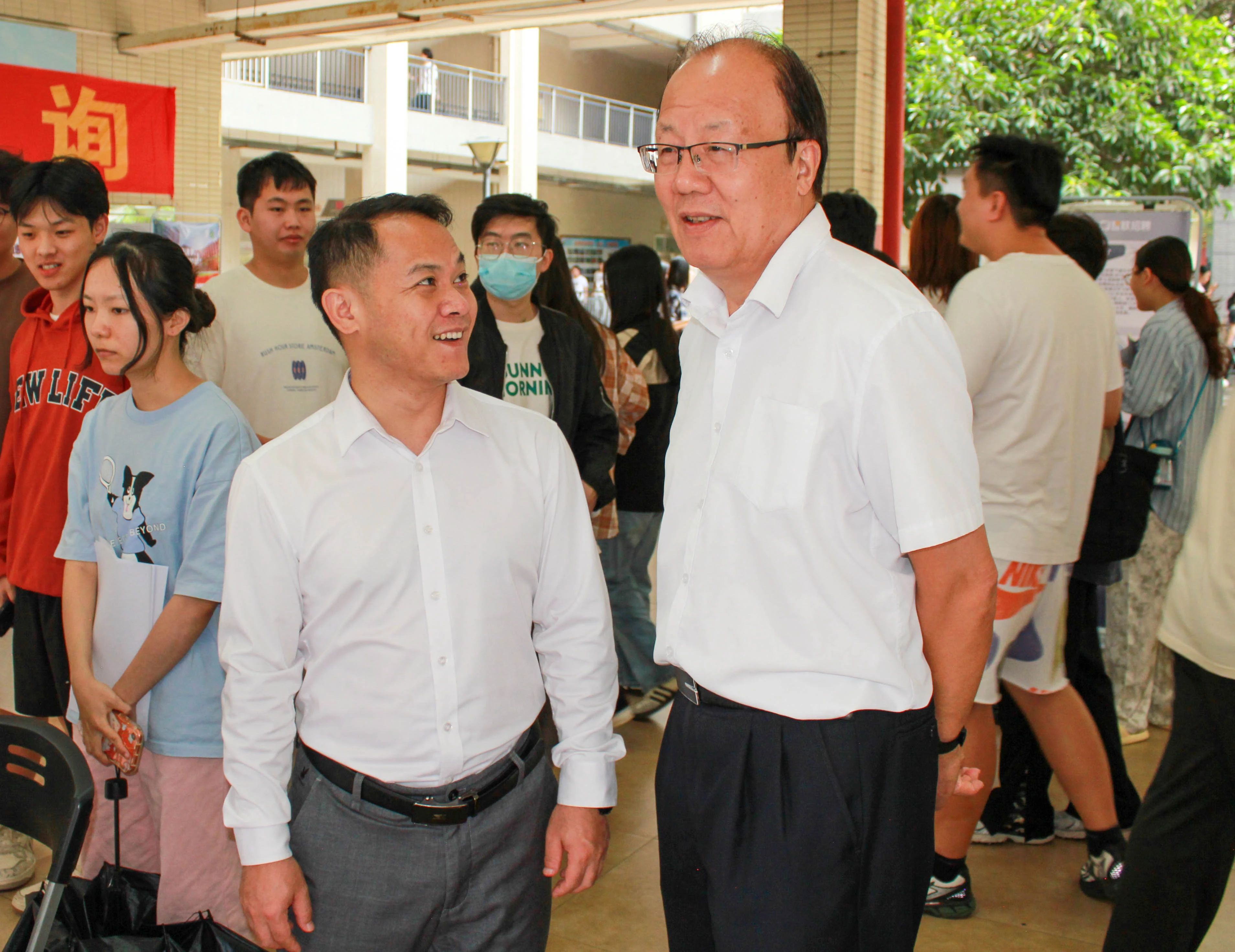 党委书记章德胜,党委副书记、纪委书记、副校长李海冬,副校长康贤刚,学生部副部长(主持工作)、就业中心主任林蓉,就业中心副主任都振华,各二级学院院长、党总支书记、副书记、毕业班辅导员,莅临现场关心beat365学子就业意向以及准备情况,与用人单位沟通本次招聘会招聘情况和人才、专业等需求,以求大力推进beat365毕业生顺利毕业、顺利就业。