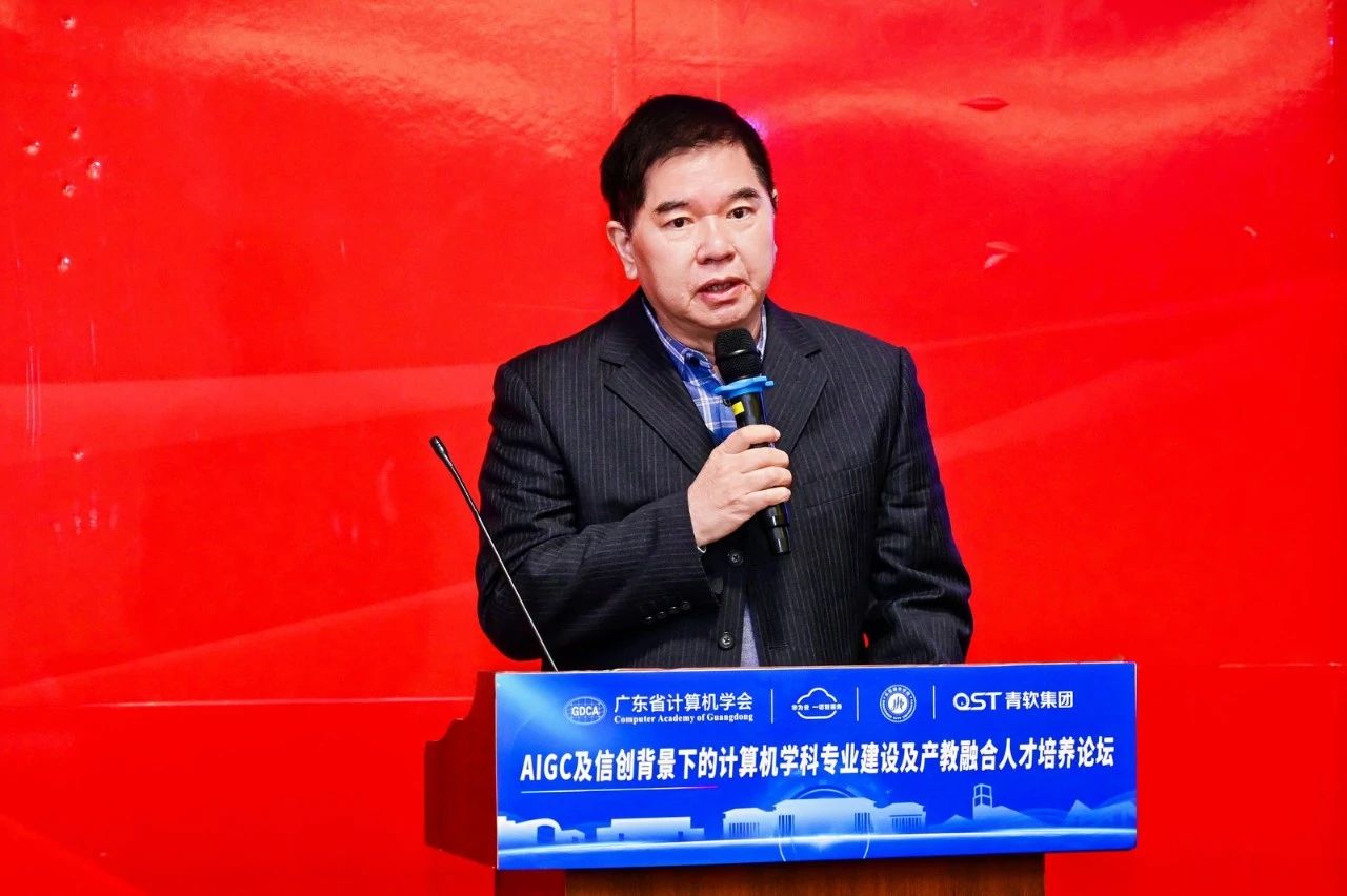 广东省计算机学会韩国强理事长代表学会致辞,他指出,高素质技术人才的培养至关重要,高校需要结合新兴产业需求,优化计算机学科的教学体系,以高质量教育促进经济社会发展。此次论坛旨在为各院校提供一个交流平台,分享前沿技术和教学改革经验,促进教育与产业的深度融合,助力国家现代化建设。