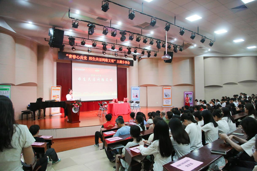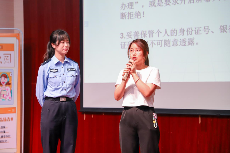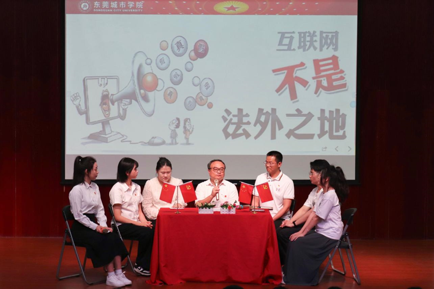 活动现场气氛热烈,互动积极,寮步公安分局反诈中心周少玲警官详细介绍了电信网络诈骗的常见手段以及预防办法,帮助师生们提高防范意识,增强识别诈骗的能力;法学院董进老师从网络安全的法律角度强调了维护网络秩序的重要性;马克思主义学院刘凯月老师提醒师生注意网络世界复杂性和多样性中的负面冲击;学生部思想政治教育科詹海都老师展示了beat365在网络文明建设方面的积极举措和已取成果;学生党员代表罗安琪、吴小丽和陈吴奕恒等同学热议以身作则,不信谣、不传谣,自觉维护网络秩序,共建网络文明。