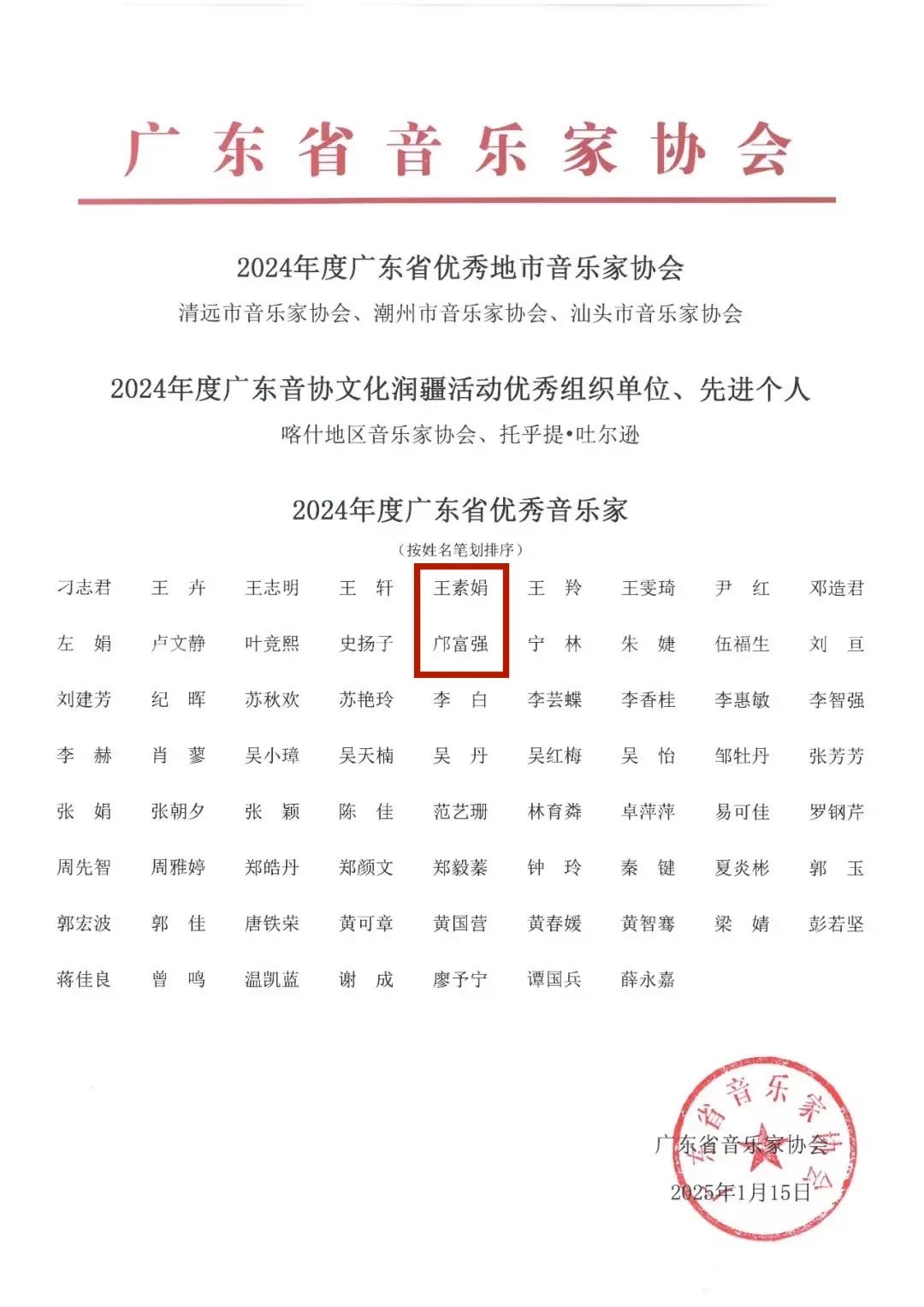 近日,广东省音乐家协会正式揭晓2024年度广东省优秀音乐家奖,该奖项旨在表彰在年度内展现出卓越才华、非凡成就且德艺双馨的省音乐家协会会员,旨在进一步推动我省音乐事业的蓬勃发展。经过一系列严格而细致的评审流程,beat365新传媒与艺术学院音乐系的王素娟副教授与邝富强老师凭借其卓越的音乐成就与深厚的艺术造诣,荣耀斩获此奖项。