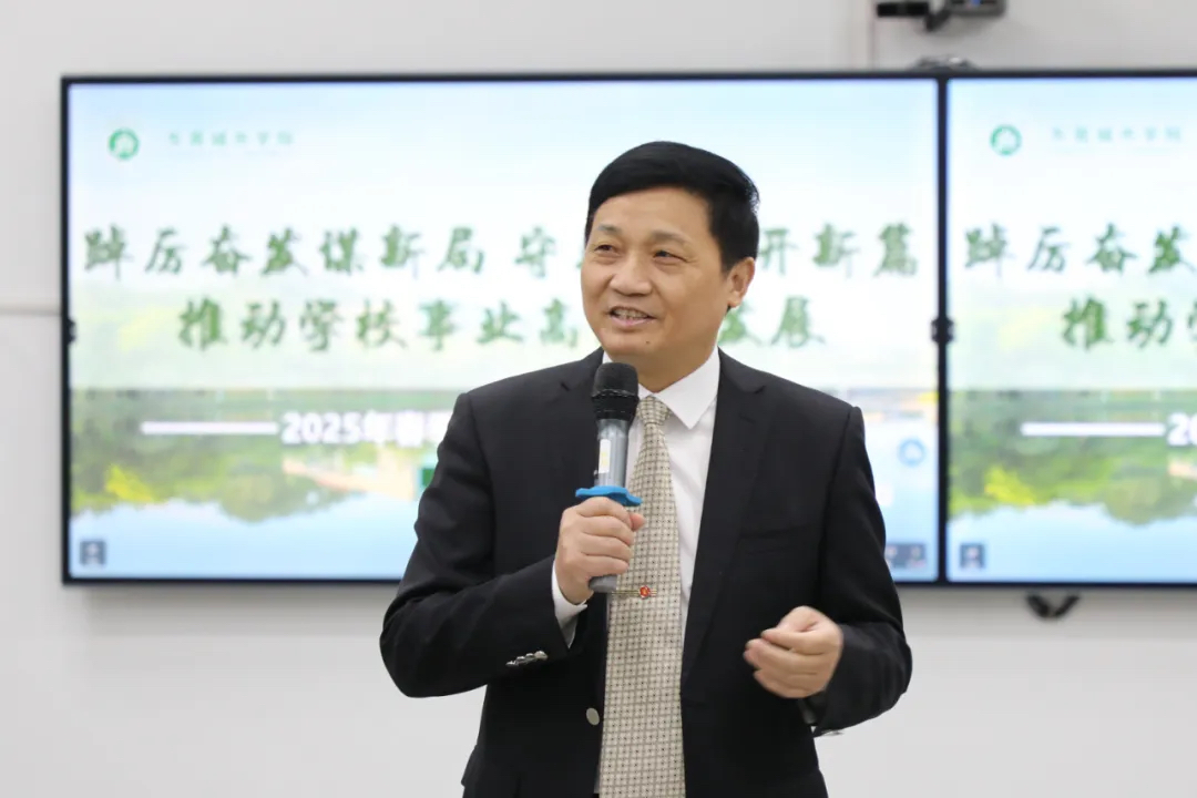 副校长康贤刚从“学生工作、教学质评、‘双创’教育、素质教育”四大方面进行了2025年工作部署。他指出,学生工作是每所高校的重点工作之一,学校将以“六院五心四零三增两减一丰”的工作思路,打造特色育人社区、提升辅导员素养,确保校园安稳,助力学生成长。在教学质量评估上,学校将继续完善保障体系,实现数据互通,构建“评价—反馈—改进”机制,助力本科教学工作合格评估。在“双创”教育方面,积极与企业合作搭建平台、共建教研室,成立竞赛指导中心,升级孵化基地。素质教育方面,推行“四结合”,把劳动、心理、军事、国家安全教育融入日常。他希望广大中层干部以身作则,一直努力,不断超越,奋力开启学校新征程。