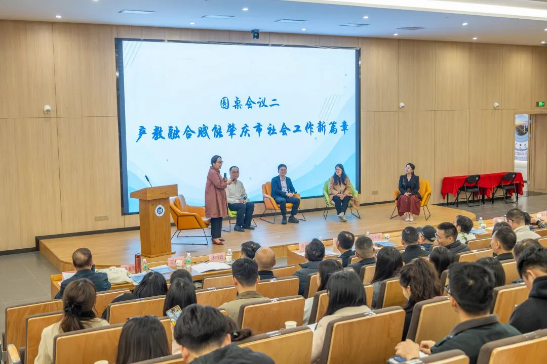 本次会议聚焦“党建引领肇庆市社会工作新发展”和“产教融合赋能肇庆市社会工作谱新篇”两个主题,开展了两场精彩纷呈的圆桌会议。来自中山大学的张和清教授、厦门大学的黄晓星教授围绕当下社会工作前沿理论与肇庆市社会工作实践,发表了内涵丰富的主旨演讲。来自政府、高校、社会组织的代表分别结合自身工作经验与专业见解就如何推动社会工作高质量发展这一核心主题展开发言,现场气氛热烈、内容丰富多彩,为与会者提供深刻启示。互动交流环节中,各方积极建言献策,针对当前社会工作发展面临的挑战与机遇,提出了一系列务实且具前瞻性的建议,为校政合作工作开展提供了宝贵思路。