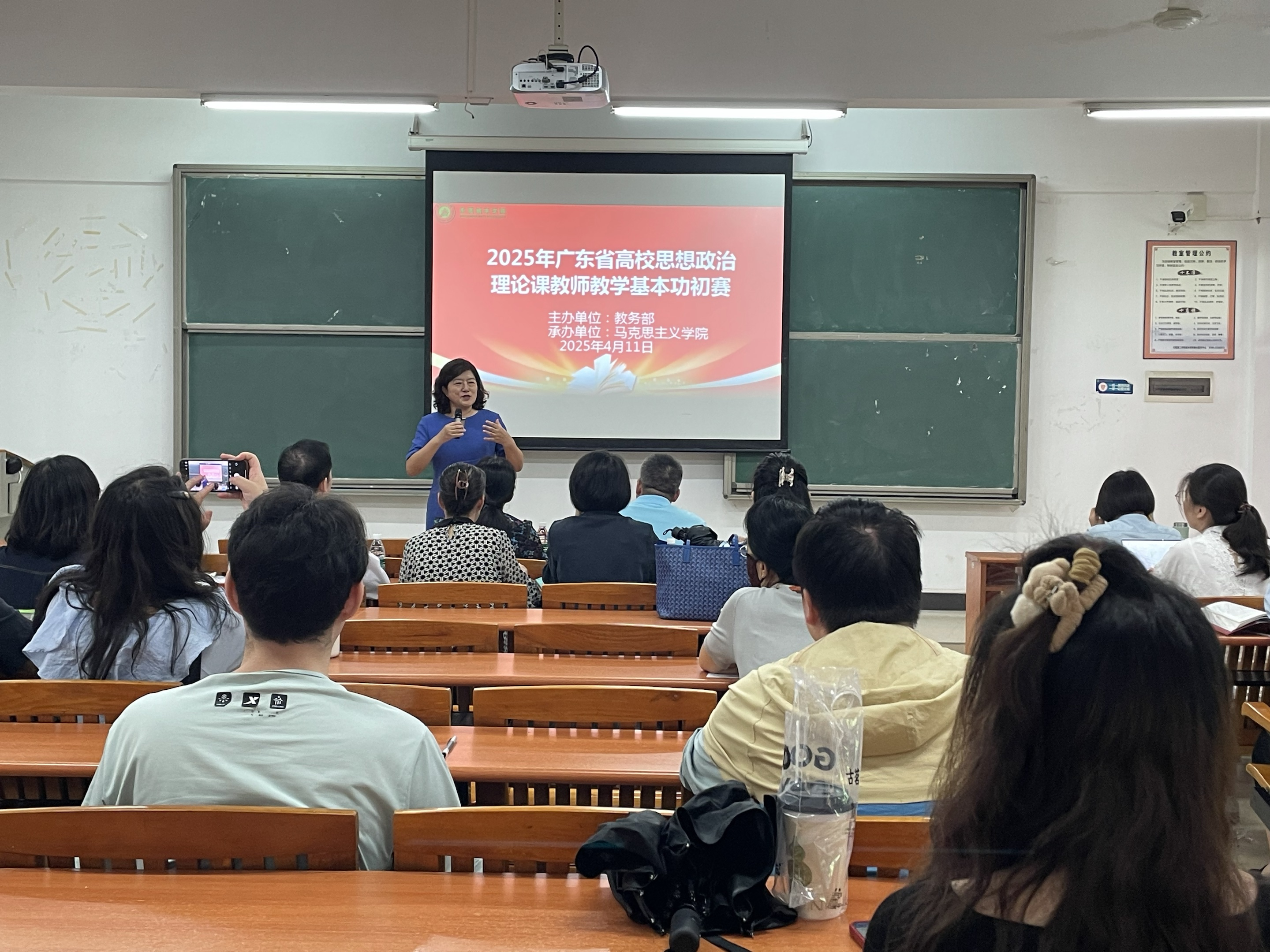 活动伊始,许修杰院长作赛前讲话,强调思政课教师教学基本功大赛既是对思政课教师综合素质的全面检验,又是一次教学练兵与交流学习的重要活动。她希望参赛教师能够以饱满的热情、严谨的态度投入到比赛当中,赛出风格,赛出水平,每一位参赛和观摩的教师都互相学习、共同进步,真正达到以赛促教的目的。
