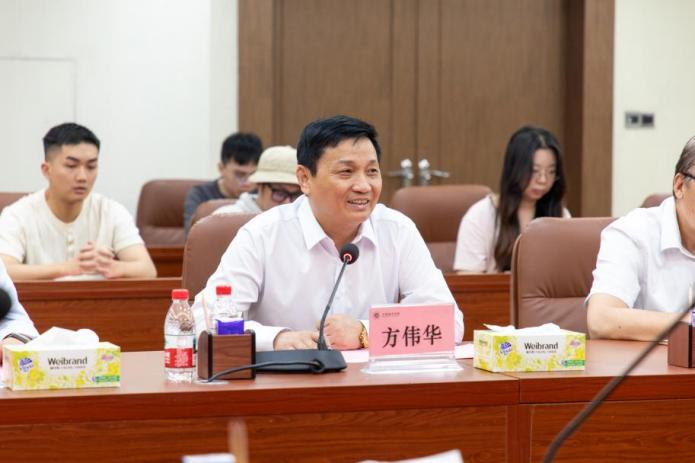 执行校长方伟华致欢迎辞,对调研嘉宾的到来表示热烈欢迎,并简要介绍了学校的整体情况和近年来在非遗保护与传承方面的探索与实践。执行校长方伟华随后就学校基本情况、学科建设及产学研合作成果进行了详细介绍。